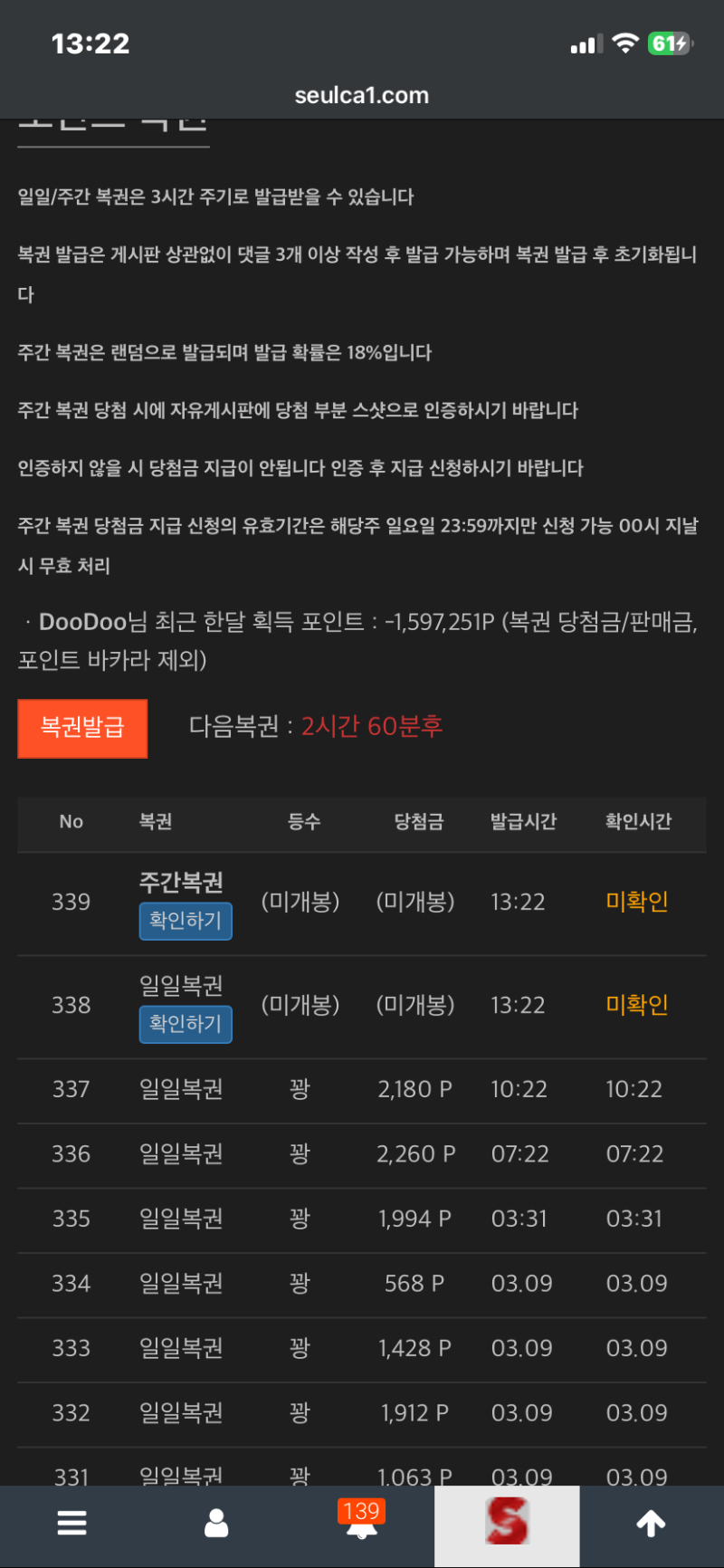 쌍복이 출동!! DooDoo 2 0 0 13:24:23 *기프티콘 바코드 노출 주의* <- 결과는....꽝꽝!!!잠시나마 행복했었다.. 0 0 https://seulca1.com/bbs/board.php?bo_table=free&wr_id=3668050 Author 0 0 Lv.9 DooDoo 9 4,737,564 (18%) DooDoo님 보유 포인트 : P 3,781,582 +2 03.10 물개야 오늘 미니형난 때… +2 03.10 쌍복이 출동!! +2 03.10 퇴근하고 싶다.. +13 03.10 바카라2연패 +12 03.10 바카라1패