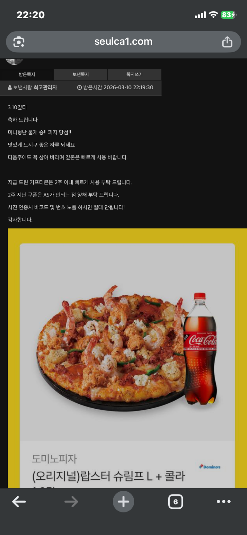 형난 오리 꼴등!!피자 감사 DooDoo 4 0 0 22:21:24 *기프티콘 바코드 노출 주의* <- 0 0 https://seulca1.com/bbs/board.php?bo_table=free&wr_id=3669938 Author 0 0 Lv.9 DooDoo 9 4,752,139 (18%) DooDoo님 보유 포인트 : P 3,996,157 +4 03.10 형난 오리 꼴등!!피자 감사 03.10 시안 미형 참여 +2 03.10 물개야 오늘 미니형난 때… +2 03.10 쌍복이 출동!! +2 03.10 퇴근하고 싶다..
