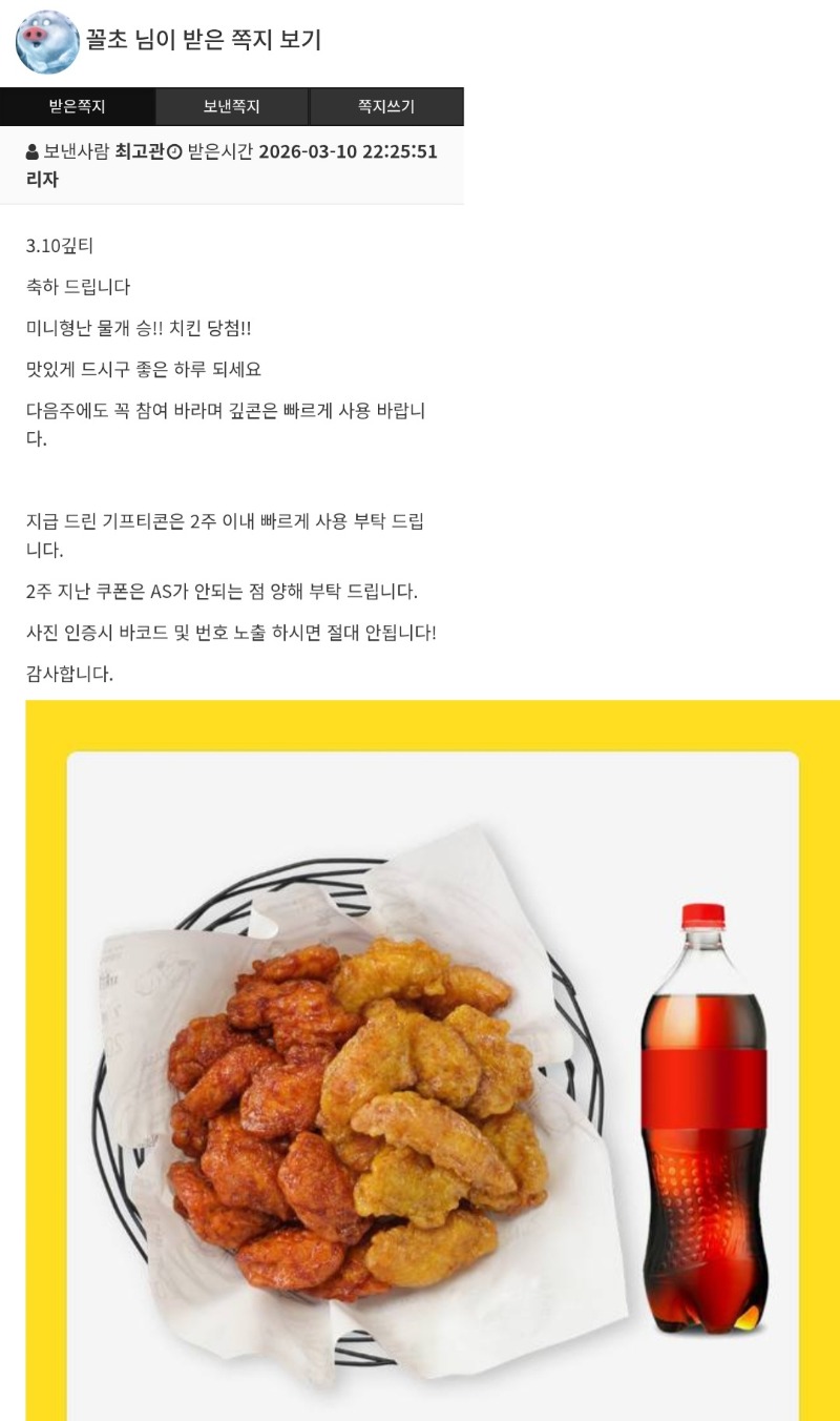 드디어 오리 치킨당첨 미니형난을 얼마나맞췃는데!!