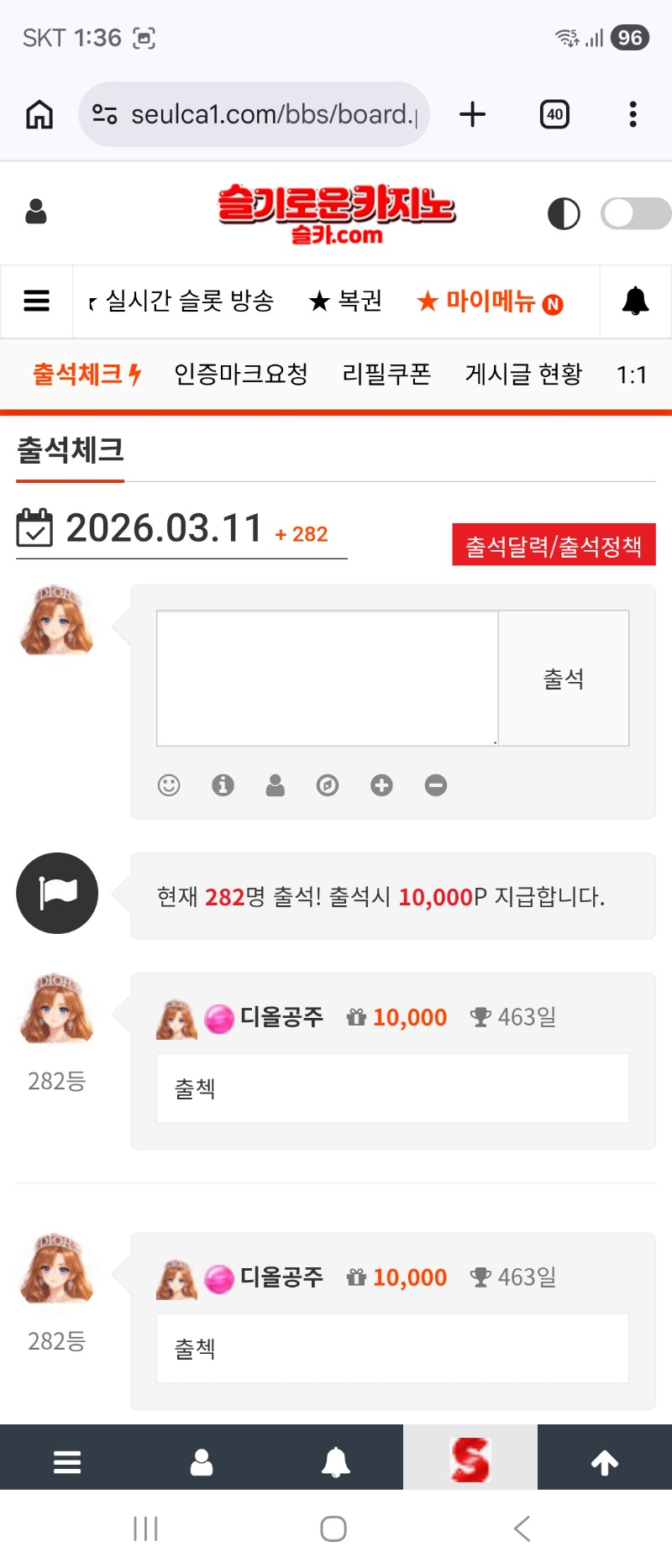 출첵 ^^ 디올공주 0 0 0 01:36:37 *기프티콘 바코드 노출 주의* <- 0 0 https://seulca1.com/bbs/board.php?bo_table=free&wr_id=3670510 Author 23 15 Lv.19 디올공주 19 197,398,116 (0%) 디올공주님 보유 포인트 : P 506,926 +6 03.11 네츄럴에 졌당 +6 03.11 타이뒤엔 5대2승 +6 03.11 타이 시르다5대5타이 03.11 출첵 ^^ 03.11 리필요