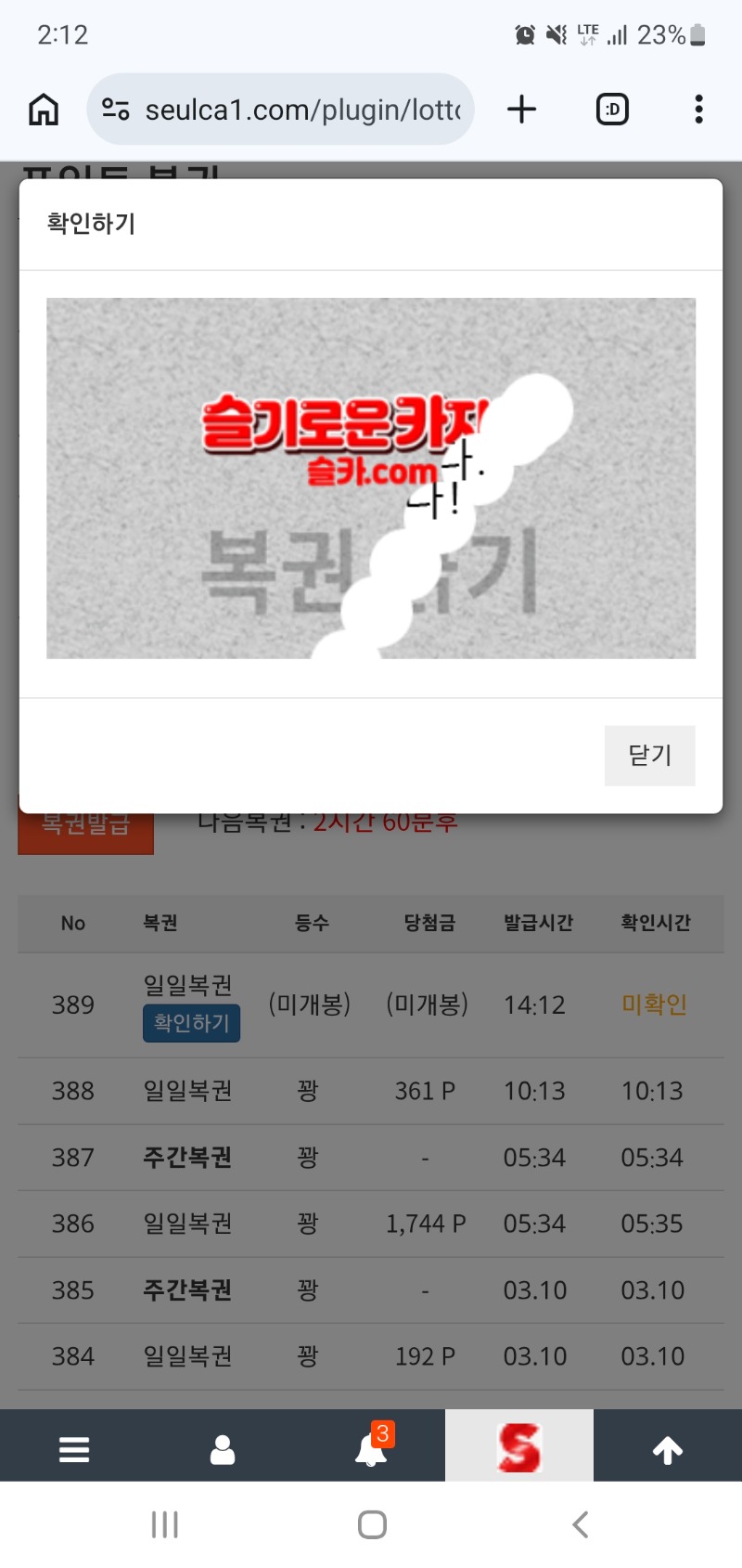 점심 췍.. 무조건한방가자 1 0 0 14:14:32 *기프티콘 바코드 노출 주의* <- 복췍은 항상 .. 0 0 https://seulca1.com/bbs/board.php?bo_table=free&wr_id=3671815 Author 0 0 Lv.8 무조건한방가자 8 3,126,198 (12%) 무조건한방가자님 보유 포인트 : P 162,670 +1 03.11 점심 췍.. 03.11 오전복첵 +2 03.11 왠일로 쌍복이를 또주나했으나 +6 03.10 오랜만에 쌍복인데 +2 03.10 시안미형참완