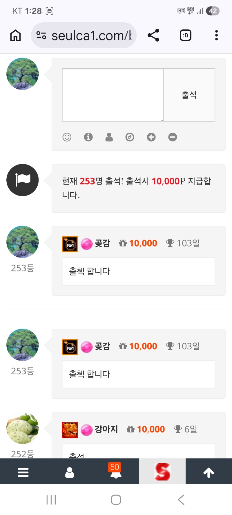 출첵 합니다 곶감 0 0 0 01:40:50 http://만근을향해 고고 + 1 *기프티콘 바코드 노출 주의* <- 0 0 https://seulca1.com/bbs/board.php?bo_table=free&wr_id=3673329 Author 6 3 Lv.18 곶감 18 140,941,454 (68%) 곶감님 보유 포인트 : P 4,302,460 03.12 출첵 합니다 03.12 일복 계속 꽝 입니다 답이없네요 03.12 들어갑니다 +3 03.12 최배비 적중 했네요 +2 03.11 계속 꽝 입니다