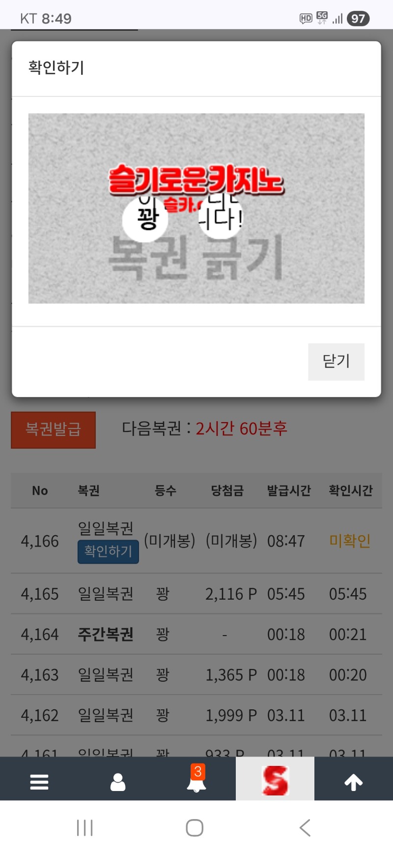 모닝복권은..꽝 지킴이 4 0 0 08:55:09 *기프티콘 바코드 노출 주의* <- 역시ㅠ 0 0 https://seulca1.com/bbs/board.php?bo_table=free&wr_id=3673700 Author 10 5 Lv.18 지킴이 18 154,931,752 (91%) 지킴이님 보유 포인트 : P 79,537 03.12 고모 5만포 받고~~^^ +4 03.12 모닝복권은..꽝 +2 03.12 출근길 모닝커피 ~~ +2 03.12 굿모닝입니다 03.12 이거 교환하고 싶은데 ㅠ