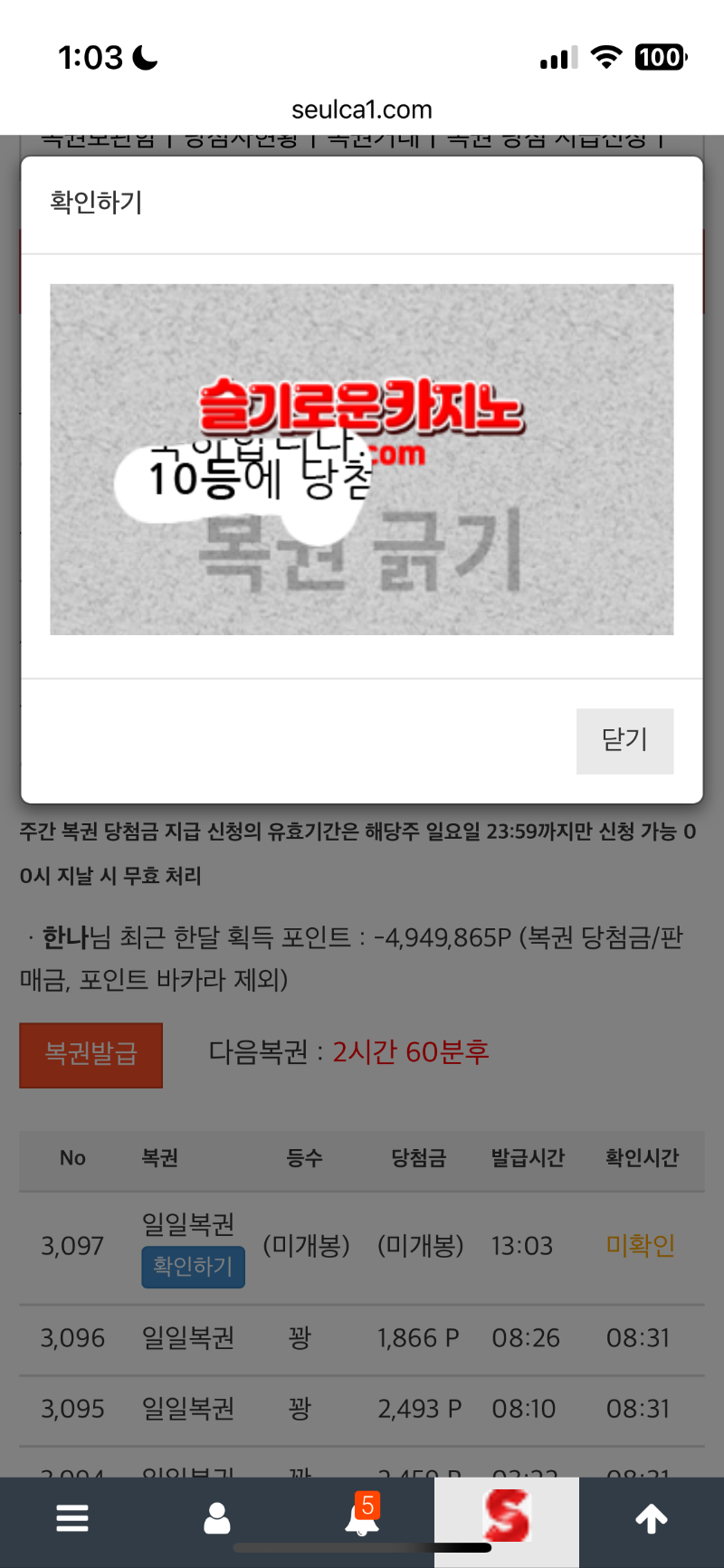 일복10등 ! 한나 4 0 0 13:05:01 *기프티콘 바코드 노출 주의* <- 일복 10등 당첨 ㅎㅎ 0 0 https://seulca1.com/bbs/board.php?bo_table=free&wr_id=3674181 Author 1 0 Lv.11 한나 11 11,534,541 (51%) 한나님 보유 포인트 : P 12,994,701 +1 03.12 형난 투표 못할뻔 ㅎㅎ +4 03.12 일복10등 ! 03.11 주복아ㅠㅠㅠ +1 03.11 최배비 적중! +1 03.11 굿모닝이요