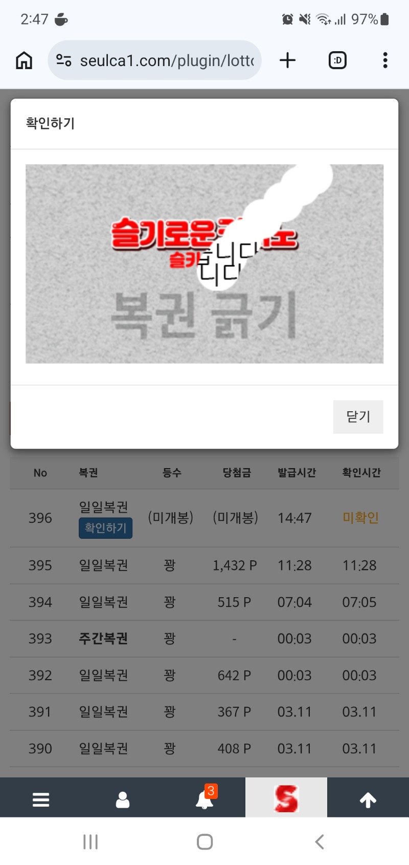 주복이좀 우선주라아앙 무조건한방가자 1 0 0 14:51:38 *기프티콘 바코드 노출 주의* <- 좋지? 당첨도주믄 더좋을텐데..마냥 좋아지고싶다ㅜㅜ 0 0 https://seulca1.com/bbs/board.php?bo_table=free&wr_id=3674408 Author 0 0 Lv.8 무조건한방가자 8 3,179,606 (17%) 무조건한방가자님 보유 포인트 : P 69,284 +1 03.12 주복이좀 우선주라아앙 03.12 점심복췍 03.12 날씨가 너무좋아요 +2 03.12 모닝복췍 03.12 첫복이가 쌍복이기에..