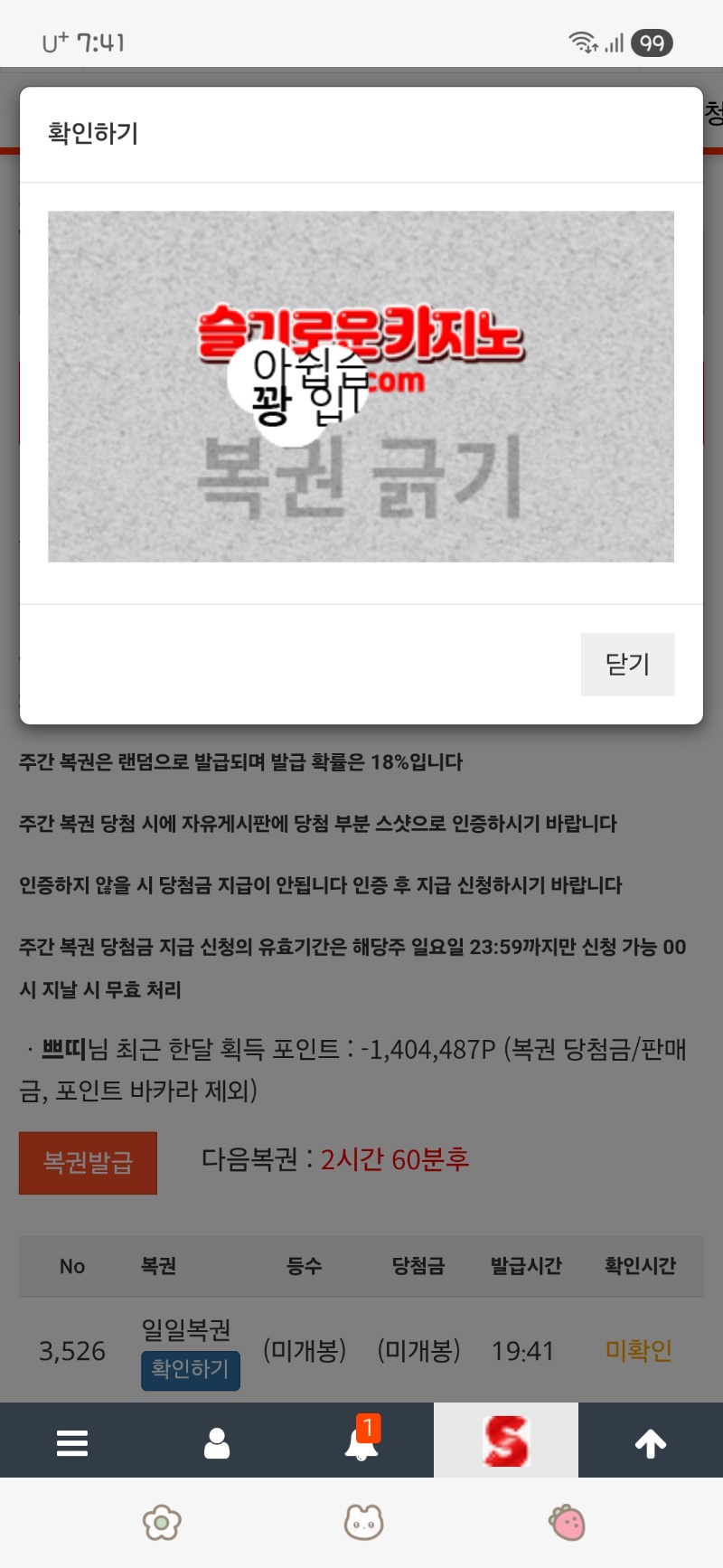 저녁 복권 꽝 쁘띠 1 0 0 19:42:10 *기프티콘 바코드 노출 주의* <- 0 0 https://seulca1.com/bbs/board.php?bo_table=free&wr_id=3675456 Author 16 4 Lv.17 쁘띠 17 77,898,727 (26%) 쁘띠님 보유 포인트 : P 1,145,891 +1 03.12 저녁 복권 꽝 03.12 41꽝~~~ +4 03.12 아침 복권 꽝 03.12 역시 일복은 꽝 +2 03.12 새벽 쌍복~~