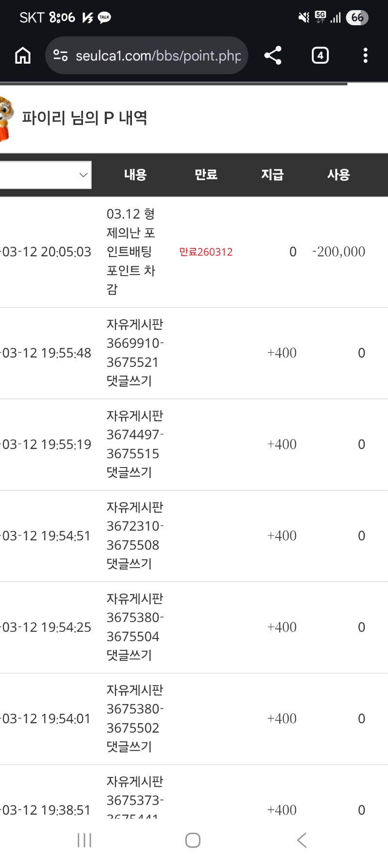 형난포 차감 파이리 2 0 0 20:07:21 *기프티콘 바코드 노출 주의* <- 0 0 https://seulca1.com/bbs/board.php?bo_table=free&wr_id=3675578 Author 2 1 Lv.12 파이리 12 17,391,607 (87%) 파이리님 보유 포인트 : P 2,000 03.12 시안 가족방포+시안형난응원+물개비제쿱교환까지 03.12 양이형승! 토끼야 고생했어!!! +2 03.12 형난포 차감 +9 03.12 와타도그 추겜이랑~~~ 수익쿱 ~~ +13 03.12 웅장하다 대물형님 !!!!