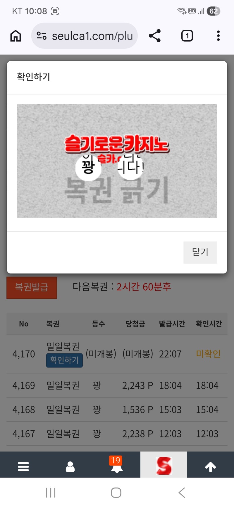 마지막복권은..꽝 지킴이 0 0 0 22:09:53 *기프티콘 바코드 노출 주의* <- 이젠 팔아야 하낭~~!! 0 0 https://seulca1.com/bbs/board.php?bo_table=free&wr_id=3675851 Author 10 5 Lv.18 지킴이 18 155,332,154 (92%) 지킴이님 보유 포인트 : P 1,121,005 03.12 양이님 승리 ~^^~ 03.12 마지막복권은..꽝 03.12 토끼님.양이님 수고하셨습니다 03.12 형난 배팅금 빠지고~~ +6 03.12 형난 슬포배팅~~