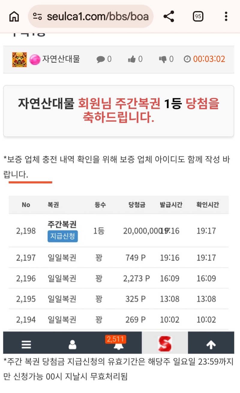주복신청 완료~~ 자연산대물 2 0 0 00:04:19 *기프티콘 바코드 노출 주의* <- 0 0 https://seulca1.com/bbs/board.php?bo_table=free&wr_id=3676257 Author 3 1 Lv.15 자연산대물 15 36,744,274 (33%) 자연산대물님 보유 포인트 : P 181,280 +2 03.13 주복신청 완료~~ 03.13 [비밀글] 주복1등 +31 03.12 오라메 138배 리플X +13 03.12 구구타이 +19 03.12 다시 9대빵승