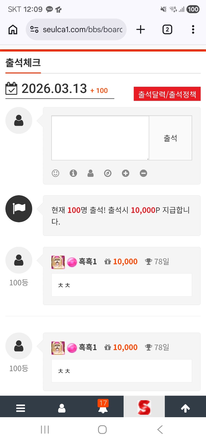 출첵완료 흑흑1 0 0 0 00:10:36 *기프티콘 바코드 노출 주의* <- 오늘은 100프로 이기고 싶네요 0 0 https://seulca1.com/bbs/board.php?bo_table=free&wr_id=3676283 Author 0 0 Lv.8 흑흑1 8 3,245,400 (24%) 흑흑1님 보유 포인트 : P 5,040,982 03.13 출첵완료 03.12 뎅이네요ㅠ +1 03.09 [비밀글] 포교신청 합니다 +1 03.05 [비밀글] 가족방 등급 배민 쿠폰 교환요 +2 03.04 주복은 안들어오고 일복만 오지만...