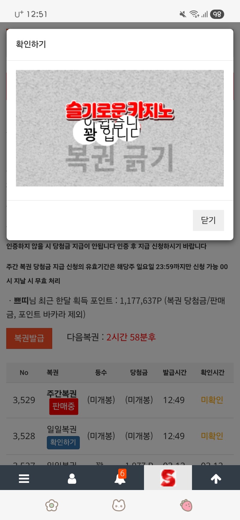 니 주복도 내가 샀는데 꽝. ㅋㅋㅋ