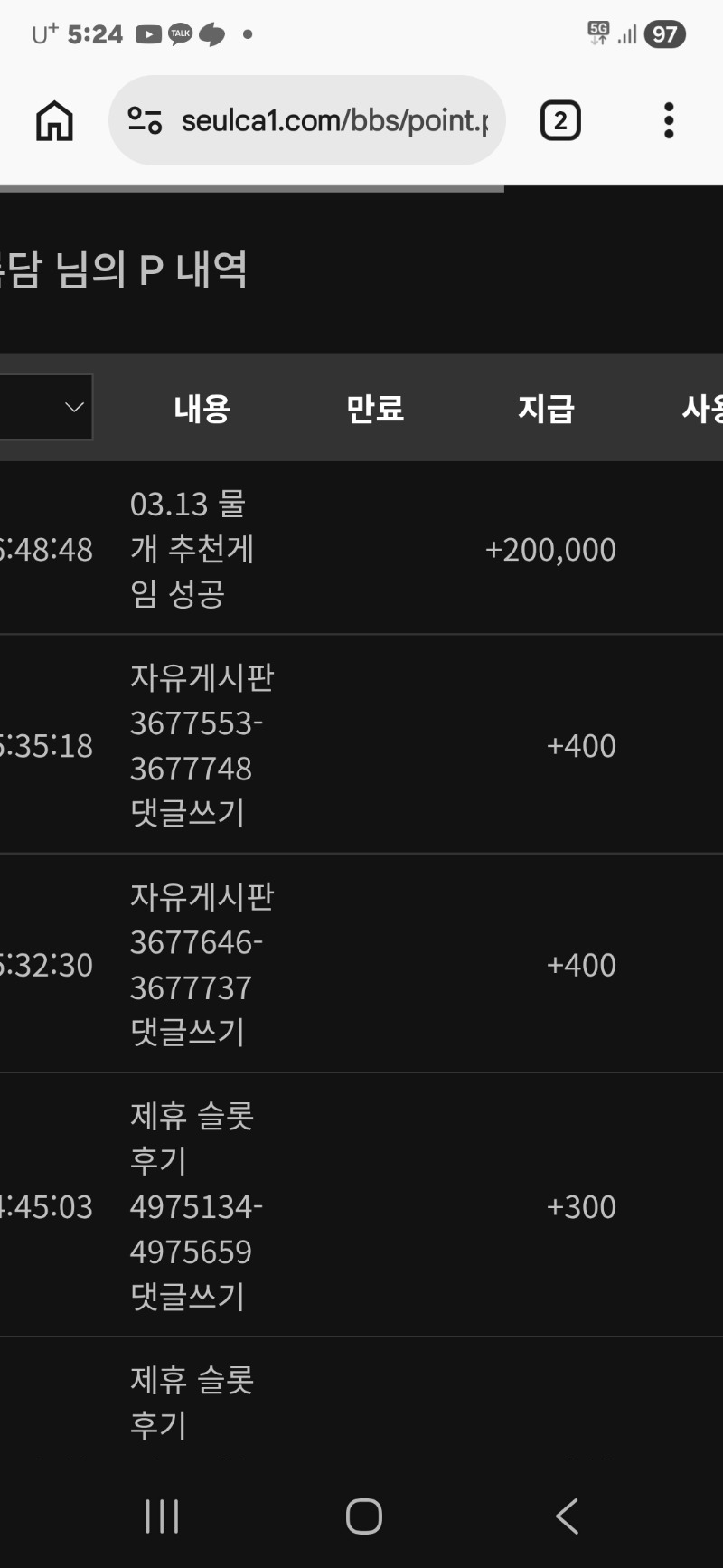 물개추겜당춈^^ 백록담 3 0 0 17:25:06 *기프티콘 바코드 노출 주의* <- 0 0 https://seulca1.com/bbs/board.php?bo_table=free&wr_id=3678122 Author 0 0 Lv.11 백록담 11 11,889,697 (62%) 백록담님 보유 포인트 : P 497,398 +4 03.13 펭이수익댓글이벤 감사~ +3 03.13 물개추겜당춈^^ 03.13 맛점하세요 +21 03.13 형난포 막배팅. +16 03.13 형난포다털엇는데... 이번은 타이네.쩝