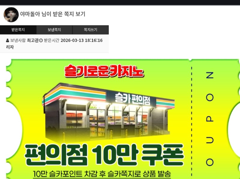 펭수익 편쿱 감사용 야마돌아 3 0 0 18:50:22 *기프티콘 바코드 노출 주의* <- 맛저들하세여~~ 오늘도 스거많이하셧네요~ 0 0 https://seulca1.com/bbs/board.php?bo_table=free&wr_id=3678397 Author 6 1 Lv.12 야마돌아 12 14,917,333 (38%) 야마돌아님 보유 포인트 : P 170,949 +7 03.13 주복8등 ㅅㅅ +3 03.13 펭수익 편쿱 감사용 +29 03.13 슈천8624배 +2 03.13 감기징허네.. +15 03.13 반페황멀146배