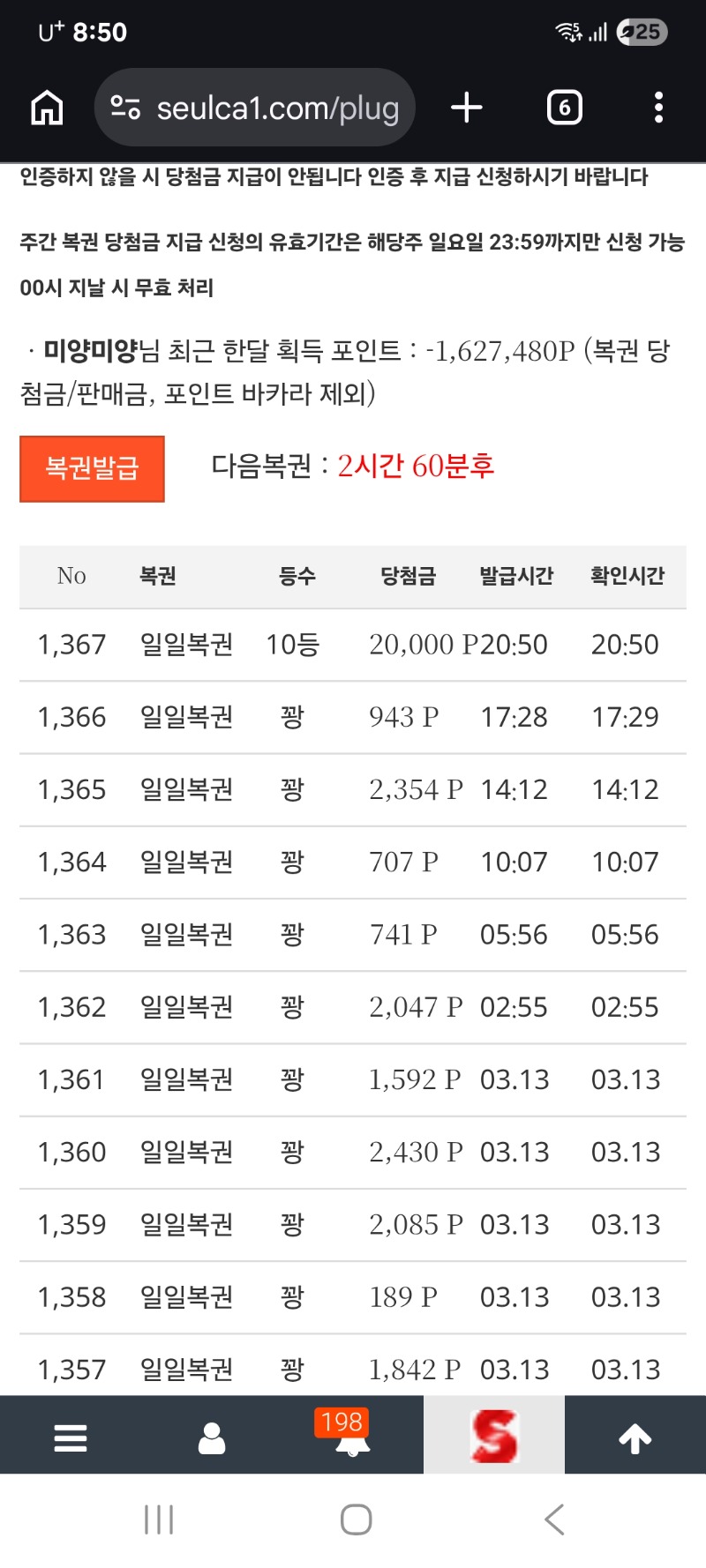 복권 65번까지 꽝주다 하나 주는게 10등이네 ㅋㅋ 미양미양 1 0 0 03.14 20:51 *기프티콘 바코드 노출 주의* <- 0 0 https://seulca1.com/bbs/board.php?bo_table=free&wr_id=3681522 Author 0 0 Lv.6 미양미양 6 1,017,521 (1%) 미양미양님 보유 포인트 : P 625,518 +1 03.14 복권 65번까지 꽝주다 하나 주는게 10등이네 ㅋㅋ +13 03.14 4등 감사합니다 +6 03.14 아 슬롯왕 결과 궁금해 죽겟네요 +36 03.14 슬롯왕에서 나온 멀린 2680배 +5 03.14 슬롯왕 108만 마물