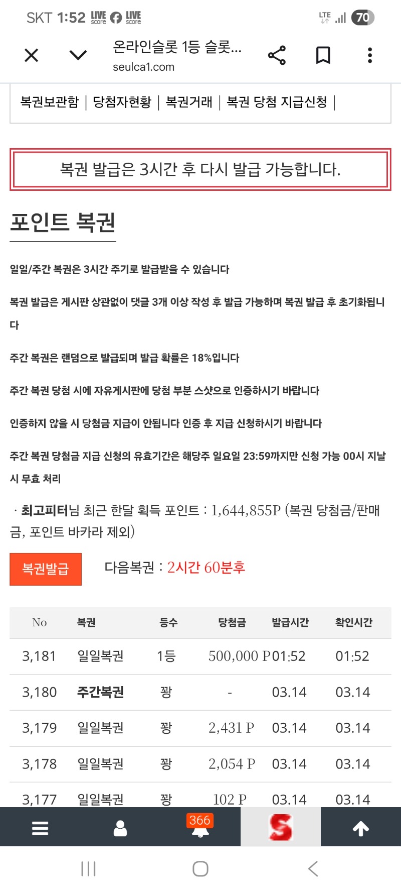 일복1등당첨 최고피터 7 0 0 01:53:03 *기프티콘 바코드 노출 주의* <- 감사용 0 0 https://seulca1.com/bbs/board.php?bo_table=free&wr_id=3682131 Author 3 0 Lv.14 최고피터 14 28,586,475 (79%) 최고피터님 보유 포인트 : P 1,845,060 +7 03.15 일복1등당첨 +2 03.14 문배민쿱감사 +30 03.14 올찬268배 +1 03.14 맛점들하십시용 +19 03.14 업치기실패망