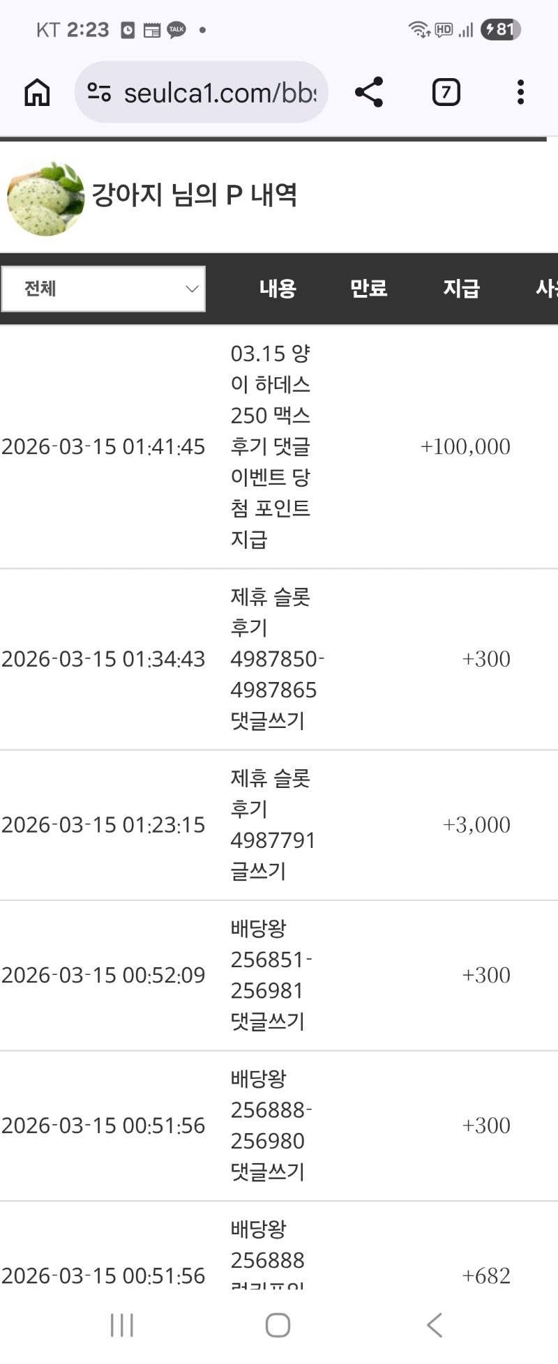 양이 맥스기념 댓글 포인트^^^ 강아지 2 0 0 02:24:20 *기프티콘 바코드 노출 주의* <- 0 0 https://seulca1.com/bbs/board.php?bo_table=free&wr_id=3682174 Author 0 0 Lv.14 강아지 14 24,826,068 (26%) 강아지님 보유 포인트 : P 2,382,695 +9 03.15 5프로존 216배 +10 03.15 5프로존 156배 03.15 출책완료 ^^^ +2 03.15 양이 맥스기념 댓글 포인트^^^ +23 03.15 5프로존 803배