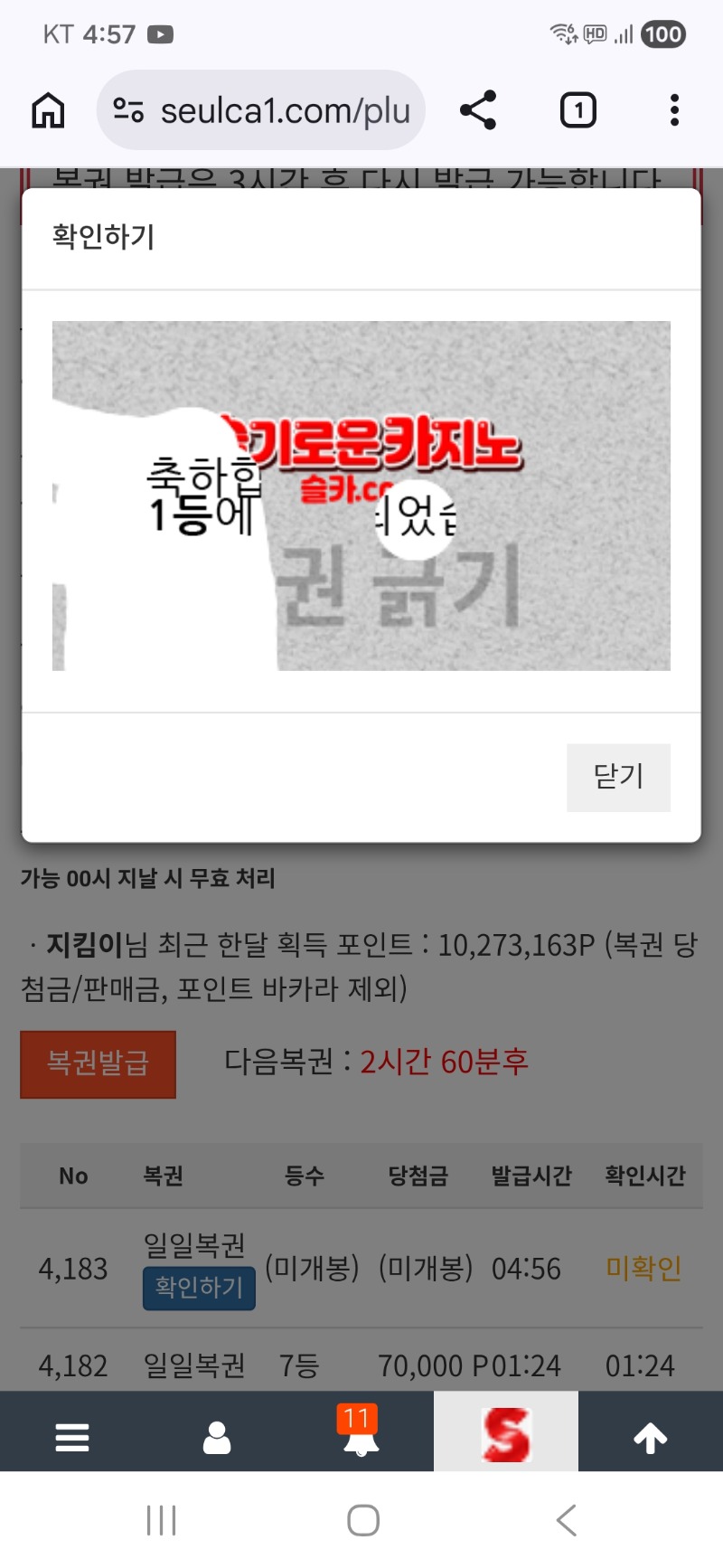 새벽에 복권발급한게 1등^^ > 자유게시판 | 온라인슬롯 1등 슬롯커뮤니티 - 슬카