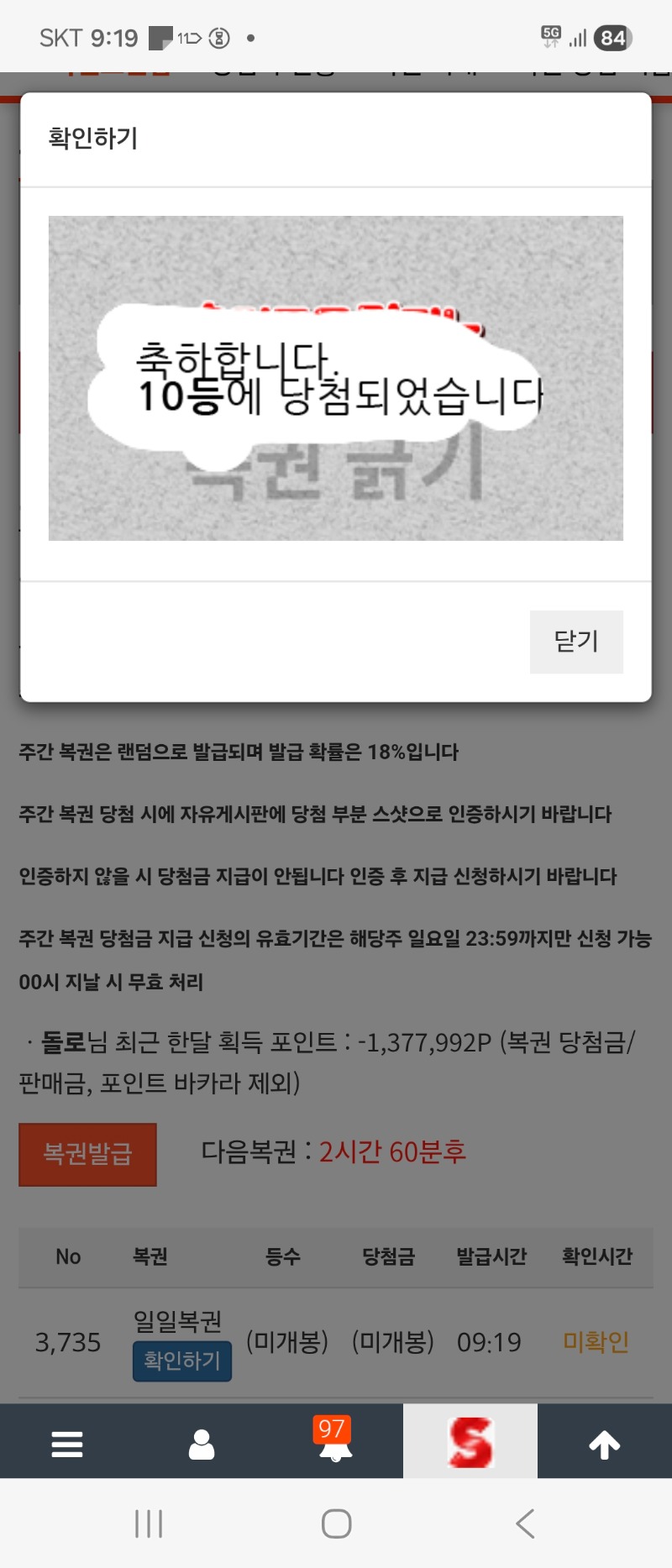 일복이 10등 돌로 6 0 0 10:45:09 *기프티콘 바코드 노출 주의* <- 0 0 https://seulca1.com/bbs/board.php?bo_table=free&wr_id=3682971 Author 3 0 Lv.15 돌로 15 35,193,757 (25%) 돌로님 보유 포인트 : P 156,211 03.15 맛점하세요 +1 03.15 오2 8000배 +21 03.15 오2맥스 +6 03.15 일복이 10등 +2 03.15 모닝복권