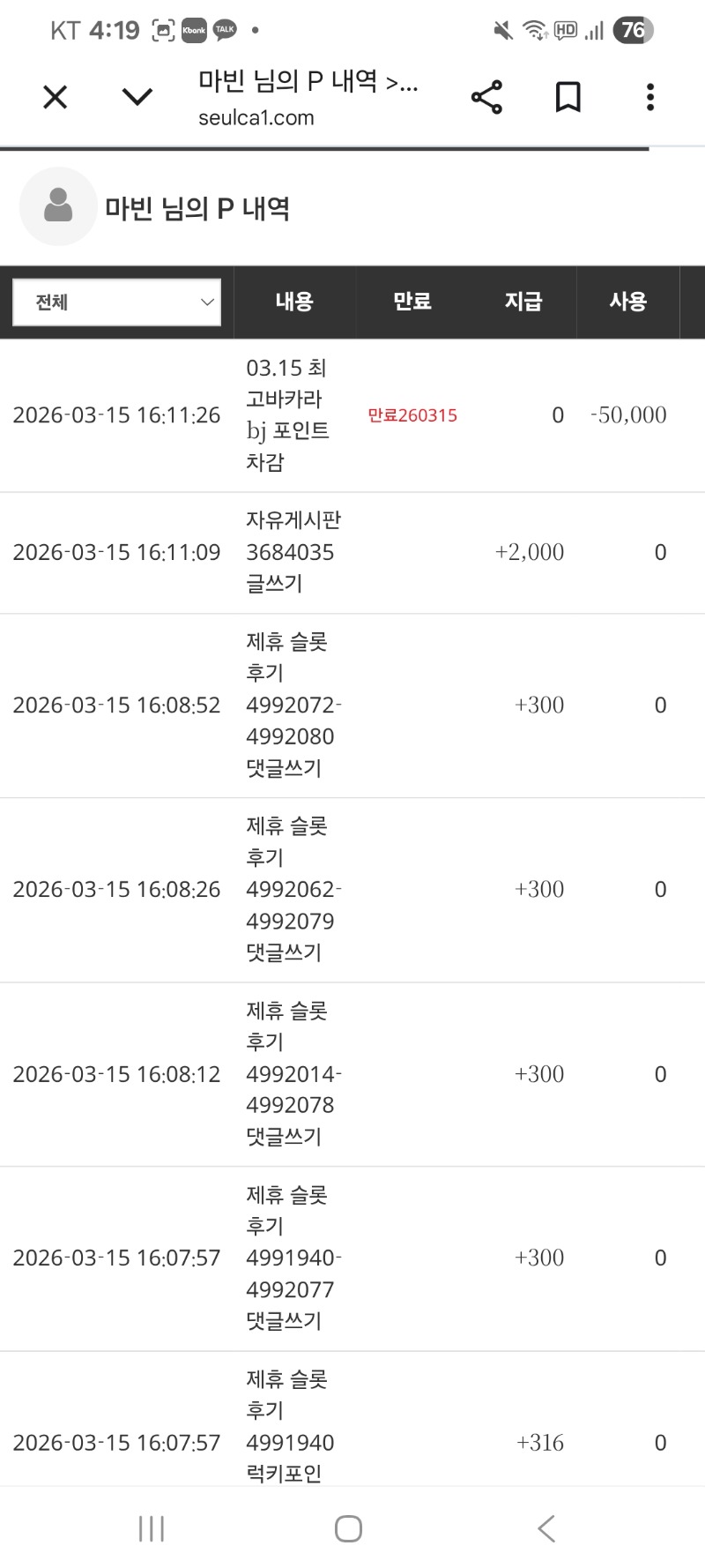최바비 참가비 차감됫네요~ 마빈 3 0 0 16:20:51 *기프티콘 바코드 노출 주의* <- 0 0 https://seulca1.com/bbs/board.php?bo_table=free&wr_id=3684061 Author 0 1 Lv.15 마빈 15 32,995,269 (14%) 마빈님 보유 포인트 : P 570,147 +2 03.15 슬슬 저녁시간이네요~ 맛나게 드세요~ +3 03.15 최바비 참가비 차감됫네요~ +4 03.15 이시간에 문 돌발 떳네요~~ +8 03.15 맛점하세요~~ +37 03.15 모노폴리 10시간혈투 마무리직전3롤진입