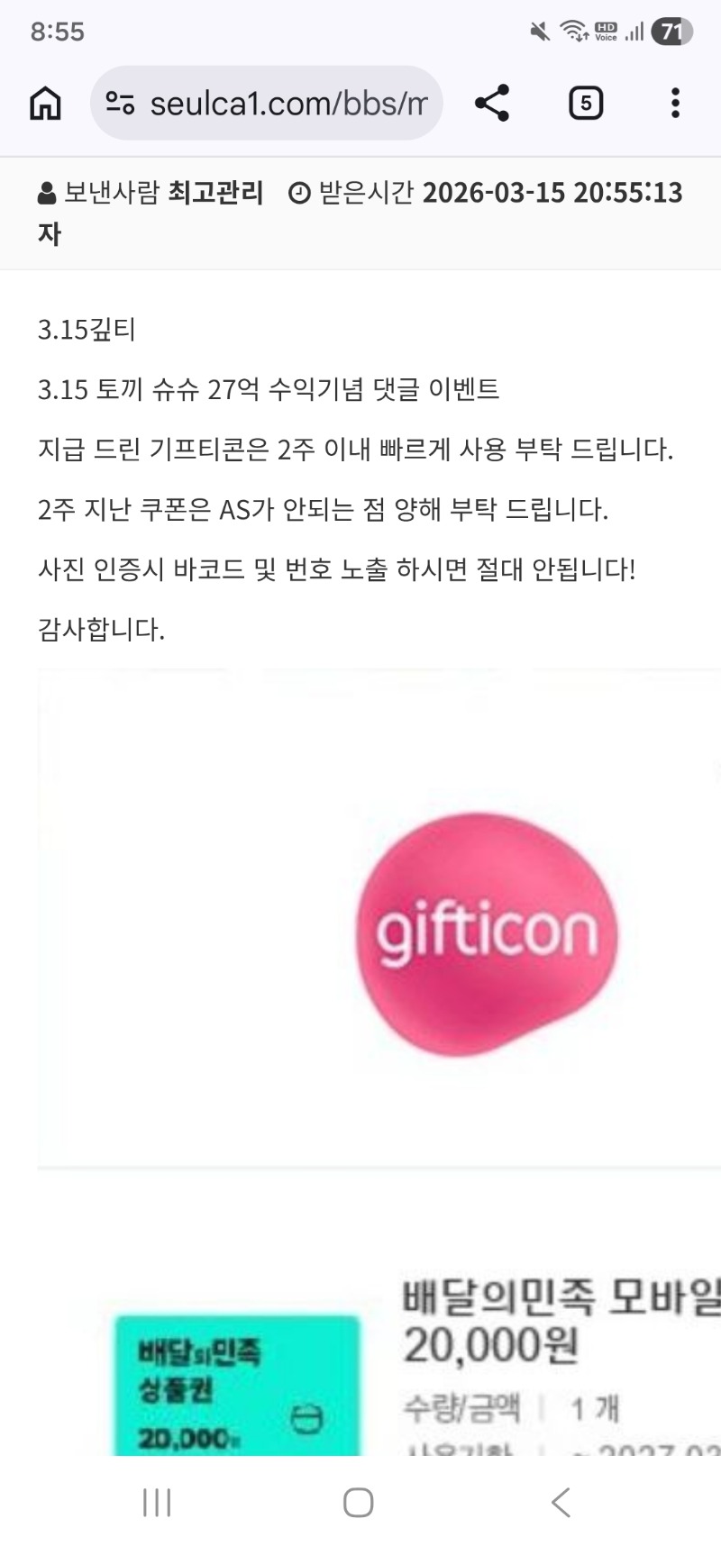 토끼 수익댓글 배민 감사합니다 지니 6 0 0 03.15 20:57 *기프티콘 바코드 노출 주의* <- 0 0 https://seulca1.com/bbs/board.php?bo_table=free&wr_id=3685610 Author 5 2 Lv.16 지니 16 57,578,228 (37%) 지니님 보유 포인트 : P 303,126 03.17 출첵 +1 03.16 출첵 +9 03.15 최바비1,2등 적중 배민 감사합니다 +6 03.15 토끼 수익댓글 배민 감사합니다 +1 03.15 [비밀글] 쿠폰교환