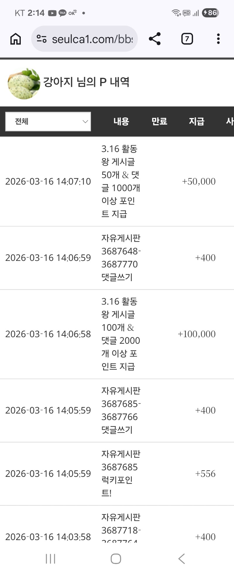 활동포 감사합니다 *^^ 강아지 2 0 0 03.16 14:15 *기프티콘 바코드 노출 주의* <- 0 0 https://seulca1.com/bbs/board.php?bo_table=free&wr_id=3687808 Author 0 0 Lv.14 강아지 14 24,992,623 (28%) 강아지님 보유 포인트 : P 751,982 03.17 토라메 227배 +2 03.17 물개 추겜당첨 포인트 ^^^ 03.16 달이 추겜 당첨 포인트~~~ +2 03.16 활동포 감사합니다 *^^ +1 03.16 출책완료 *^^^