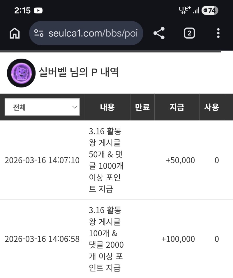 활동포인트 감사드려요 ~~ 실버벨 6 0 0 14:16:40 *기프티콘 바코드 노출 주의* <- 0 0 https://seulca1.com/bbs/board.php?bo_table=free&wr_id=3687813 Author 8 6 Lv.19 실버벨 19 165,317,806 (0%) 실버벨님 보유 포인트 : P 2,307,534 +8 03.16 펭이 추겜당첨 +7 03.16 비버 추겜당첨 ~~ +6 03.16 활동포인트 감사드려요 ~~ +3 03.16 오늘도 리필인생~~ +9 03.16 이제 편의점도 쌓인다...