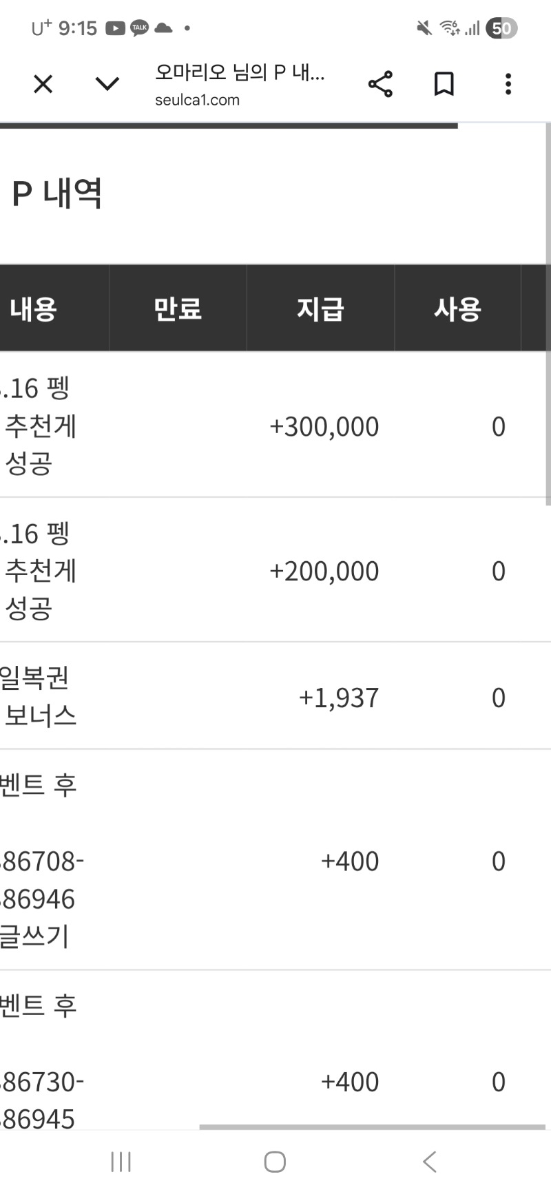 펭 추천게임 당첨~~ 오마리오 4 0 0 21:16:33 *기프티콘 바코드 노출 주의* <- 고마워 0 0 https://seulca1.com/bbs/board.php?bo_table=free&wr_id=3689398 Author 4 0 Lv.16 오마리오 16 62,689,152 (63%) 오마리오님 보유 포인트 : P 543 +4 03.16 펭 추천게임 당첨~~ +8 03.16 일복이 2등~~ +2 03.16 펭 추천게임 당첨 슬포~~ +2 03.16 출석~~ +1 03.15 [비밀글] 포인트교환 ~~