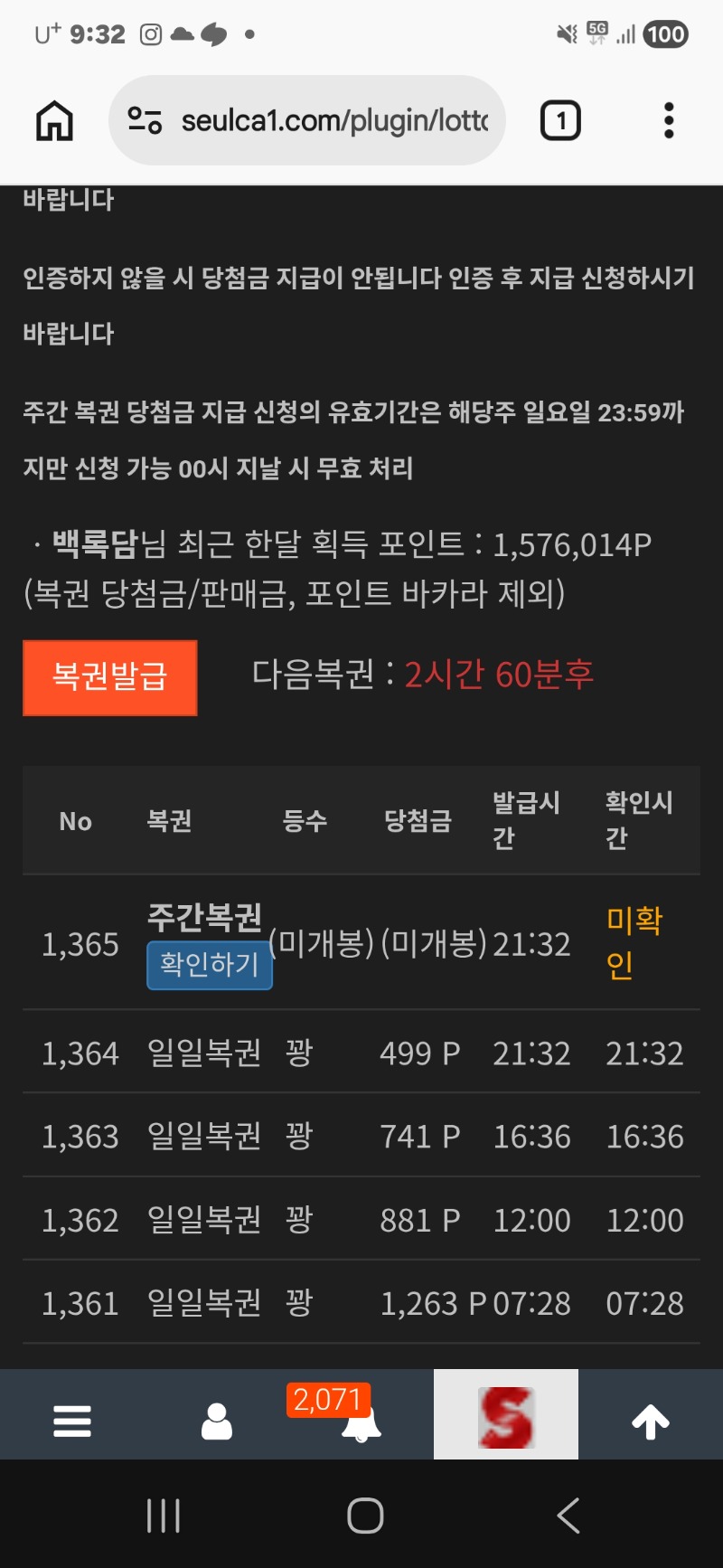 이번주 첫주복..그런데 꽝이네요.ㅋㅋ 백록담 0 0 0 21:33:40 *기프티콘 바코드 노출 주의* <- 0 0 https://seulca1.com/bbs/board.php?bo_table=free&wr_id=3689486 Author 0 0 Lv.11 백록담 11 12,193,165 (73%) 백록담님 보유 포인트 : P 17,769 +1 03.16 오늘 시안에서받은상금.루징금.포교금. 전부 오링.. 03.16 이번주 첫주복..그런데 꽝이네요.ㅋㅋ +3 03.16 맛저하세요. +5 03.16 하..이것도저것도 다안되네 이번주는 쉬어야하나? 아침부터 재섭네..잰장.. +29 03.16 루징금 투깡..깨갱...