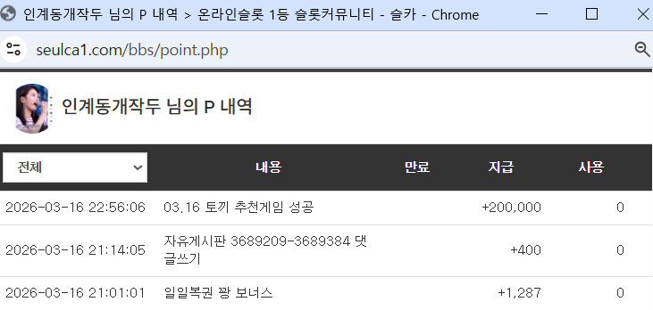 토끼 추겜당첨 인계동개작두 2 0 0 03.16 23:10 *기프티콘 바코드 노출 주의* <- 나이스 다음에 수익보장~~ 0 0 https://seulca1.com/bbs/board.php?bo_table=free&wr_id=3690062 Author 4 0 Lv.15 인계동개작두 15 31,262,938 (6%) 인계동개작두님 보유 포인트 : P 14,504,138 +2 03.16 토끼 추겜당첨 +2 03.16 랑이 추겜 좀스 성공 +9 03.16 20만 포교 후기 +17 03.16 바카라 연패 8 대 5 +17 03.16 바카라 패 8 대 2