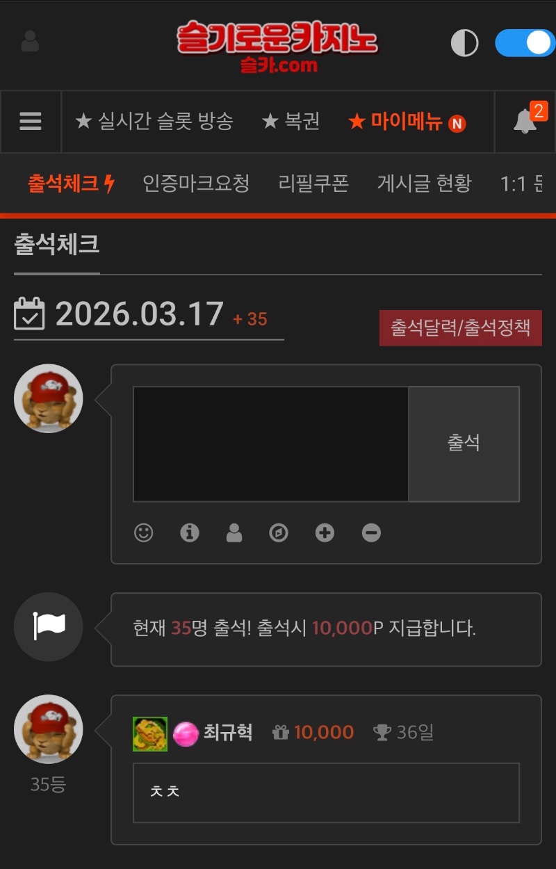 출첵 갓쨔아아 최규혁 0 0 0 00:01:59 *기프티콘 바코드 노출 주의* <- 0 0 https://seulca1.com/bbs/board.php?bo_table=free&wr_id=3690177 Author 8 4 Lv.12 최규혁 12 15,320,837 (46%) 최규혁님 보유 포인트 : P 14,448 +5 03.17 환전시간기다리며 업치 2연승 ㅅㅅ +5 03.17 시안 환전기다리며 바카라1연승 +6 03.17 시안돌발후기 03.17 출첵 갓쨔아아 +8 03.16 바카라 2연승 ㅅㅅ