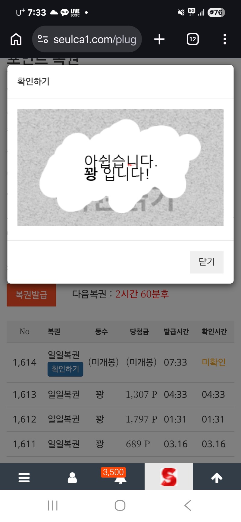 모닝복권 5G오링 0 0 0 07:34:11 *기프티콘 바코드 노출 주의* <- 꽝이네유ㅠ 0 0 https://seulca1.com/bbs/board.php?bo_table=free&wr_id=3690860 Author 2 0 Lv.13 5G오링 13 18,750,240 (15%) 5G오링님 보유 포인트 : P 1,351,441 03.17 미니형난배팅완료! 03.17 모닝복권 +1 03.17 굿모닝이여 03.17 일복꽝~~ 03.17 퇴근길춥네여