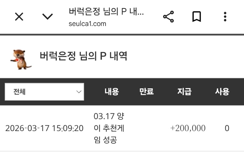 드디어 추겜당춈~ 버럭은정 9 1 0 15:16:17 *기프티콘 바코드 노출 주의* <- 1 0 https://seulca1.com/bbs/board.php?bo_table=free&wr_id=3692243 Author 1 0 Lv.9 버럭은정 9 5,869,370 (46%) 버럭은정님 보유 포인트 : P 36,210,474 +9 03.17 드디어 추겜당춈~ +3 03.15 토끼수익포인트 +4 03.15 저녁은 족발 +1 03.14 펭이 수익 배민 +6 03.13 출석대포 나이스