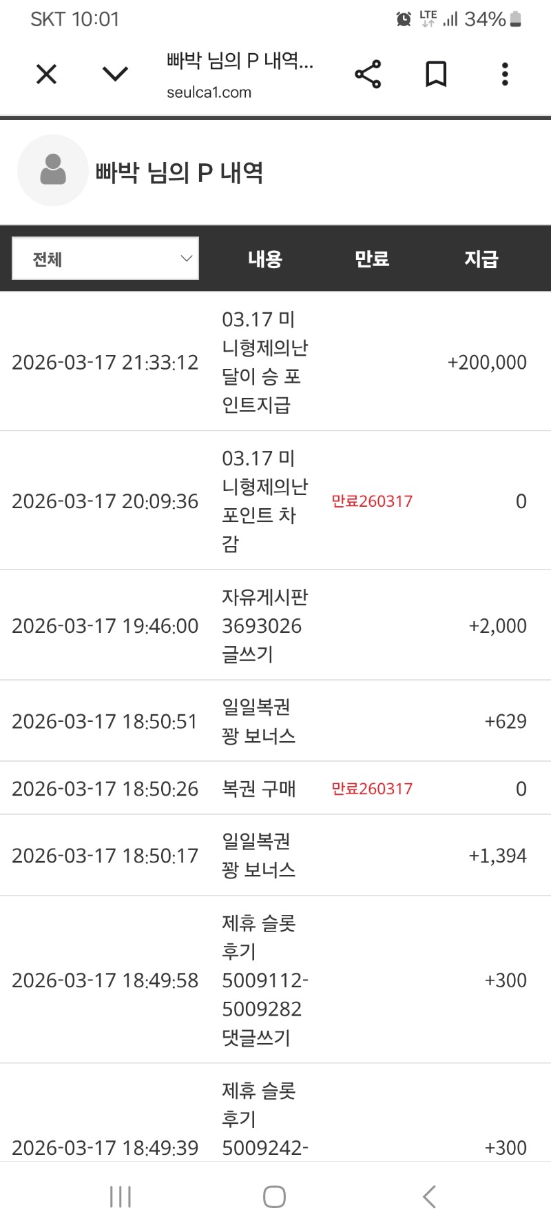 달이 이겼네ㅎ 빠박 3 0 0 22:02:47 *기프티콘 바코드 노출 주의* <- 0 0 https://seulca1.com/bbs/board.php?bo_table=free&wr_id=3693700 Author 0 0 Lv.10 빠박 10 9,758,048 (87%) 빠박님 보유 포인트 : P 1,091,685 +3 03.17 달이 이겼네ㅎ +5 03.17 오늘저녁은 분식! 라뽁이에 순대! +2 03.16 출첵하시고 잘자요ㅋ +6 03.16 포교후기 +12 03.16 부운고 레이디포츈 272.6배