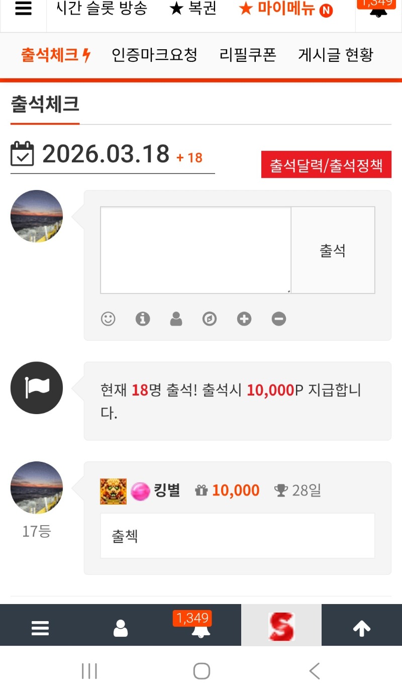 출첵 인증 킹별 0 0 0 00:01:01 *기프티콘 바코드 노출 주의* <- 0 0 https://seulca1.com/bbs/board.php?bo_table=free&wr_id=3694262 Author 3 0 Lv.15 킹별 15 42,795,770 (63%) 킹별님 보유 포인트 : P 1,780,683 03.18 출첵 인증 +1 03.17 미형 다들 수고했어 +26 03.17 카라 4연승 +25 03.17 카라 8대5 플레이어 승 +26 03.17 카라 3연승