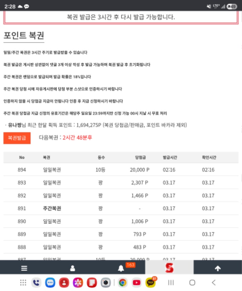 일복10당첨.... 유나짱 1 0 0 02:29:21 *기프티콘 바코드 노출 주의* <- 0 0 https://seulca1.com/bbs/board.php?bo_table=free&wr_id=3694548 Author 0 0 Lv.10 유나짱 10 8,798,984 (39%) 유나짱님 보유 포인트 : P 0 +6 03.18 토라메141 +5 03.18 토라메205 +1 03.18 일복10당첨.... +1 03.17 미형 달이승승승~~ +2 03.17 시안 미형 참여