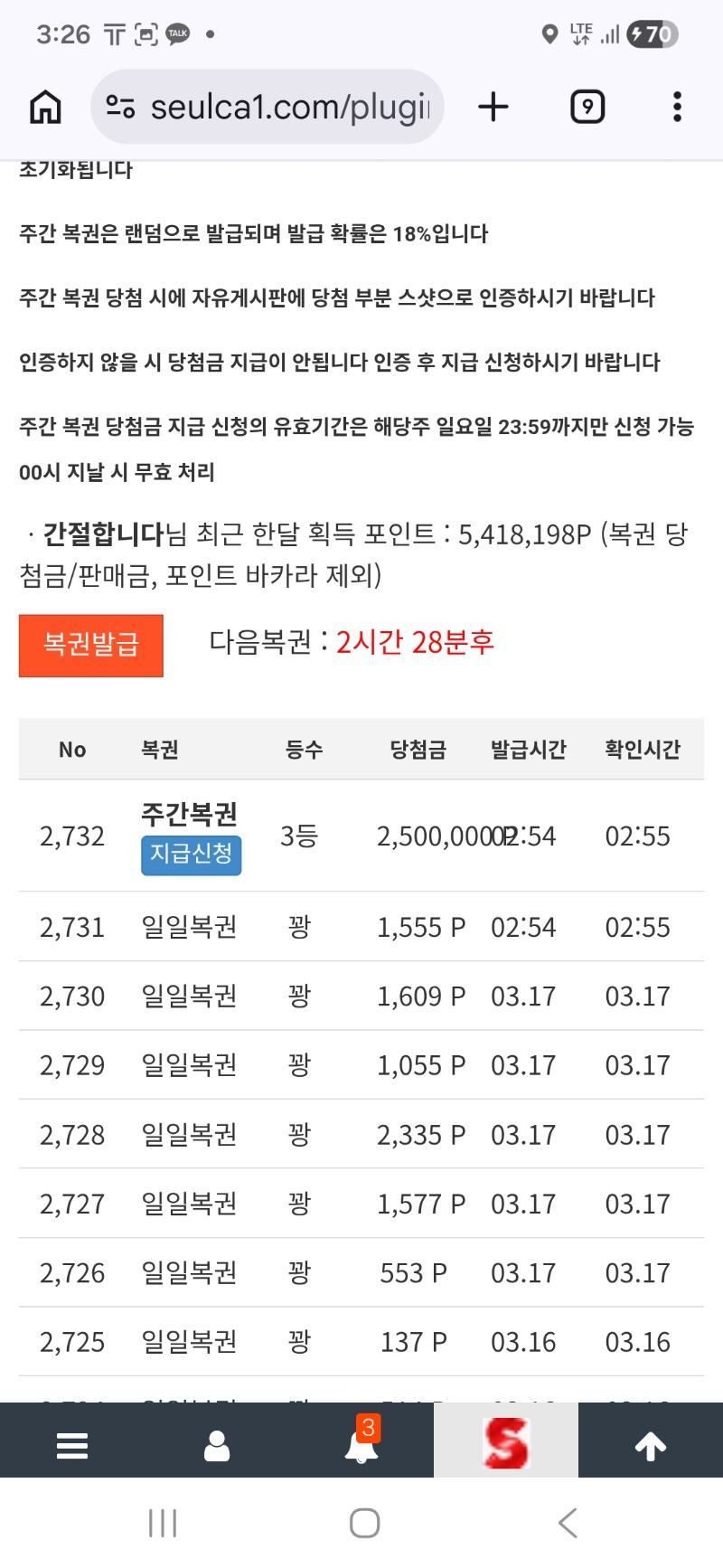 주복 3등 당첨인증 간절합니다 7 0 0 03:27:35 *기프티콘 바코드 노출 주의* <- 0 0 https://seulca1.com/bbs/board.php?bo_table=free&wr_id=3694603 Author 2 0 Lv.14 간절합니다 14 23,494,990 (7%) 간절합니다님 보유 포인트 : P 9,016 +7 03.18 주복 3등 당첨인증 +3 03.18 쌍복출현 두근두근 +4 03.17 시안 미형 참여 완료 +6 03.17 빠른 리필보상. 복수전 갑니다 +33 03.16 바가라. 희망이 읍네