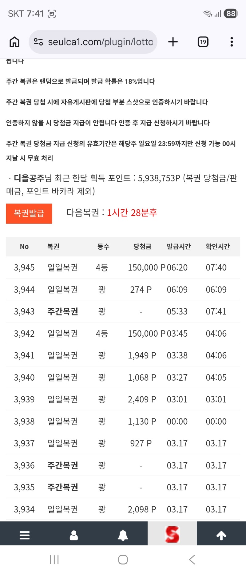 구매복권 또4등ㅅㅅ 디올공주 13 0 0 07:42:34 *기프티콘 바코드 노출 주의* <- 0 0 https://seulca1.com/bbs/board.php?bo_table=free&wr_id=3695001 Author 23 16 Lv.19 디올공주 19 201,821,006 (0%) 디올공주님 보유 포인트 : P 6,013,344 +13 03.18 구매복권 또4등ㅅㅅ +3 03.18 굿모닝입니다 ~ +16 03.18 구매복권 4등ㅅㅅ +4 03.18 출첵합시다 +30 03.17 뒷발 나이스 ㅎ