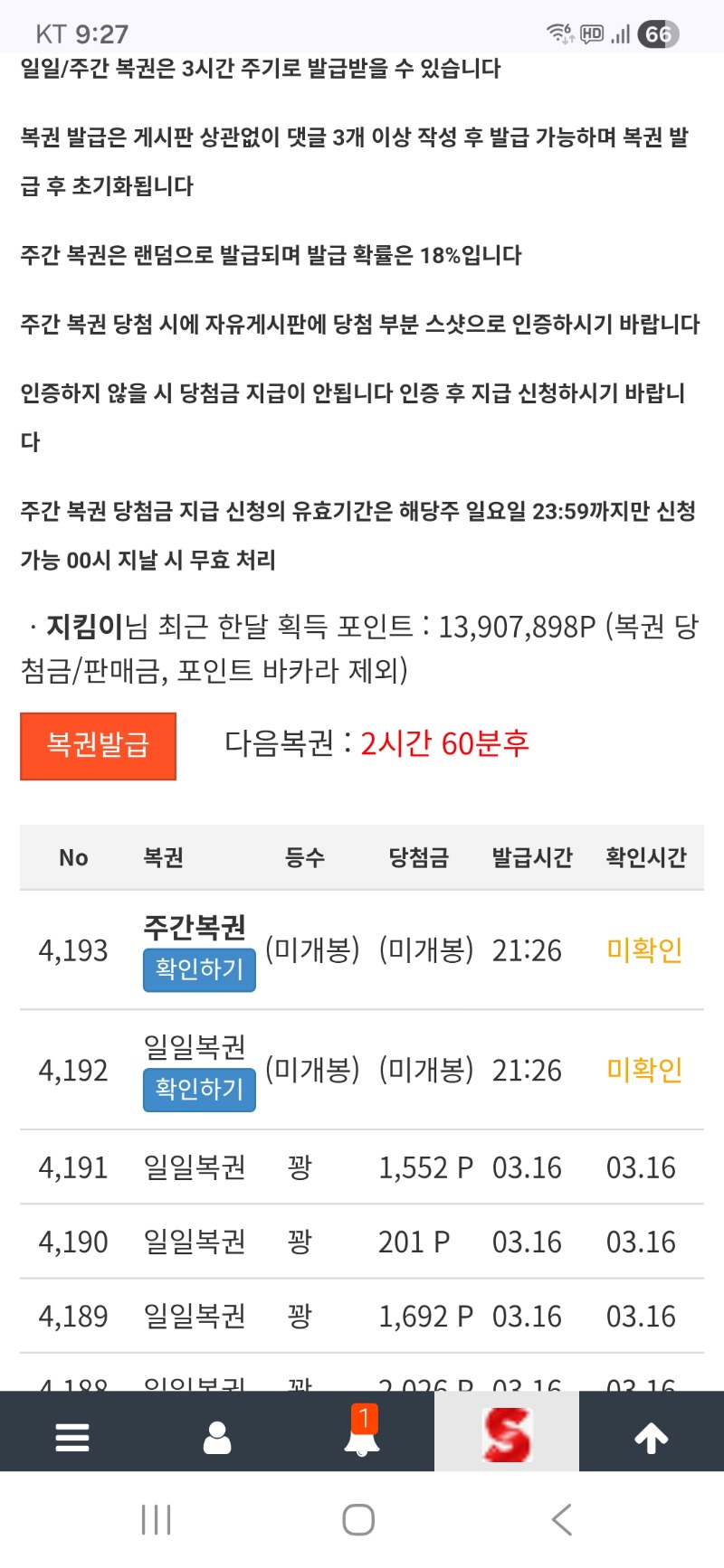 이번주.첫쌍복~~파는걸로 지킴이 5 0 0 21:28:04 *기프티콘 바코드 노출 주의* <- 0 0 https://seulca1.com/bbs/board.php?bo_table=free&wr_id=3698467 Author 10 5 Lv.18 지킴이 18 156,803,428 (94%) 지킴이님 보유 포인트 : P 797,777 +5 03.18 이번주.첫쌍복~~파는걸로 +5 03.18 맛저 하세요 ~~ +10 03.18 즐거운 퇴근시간~~ +4 03.18 식후엔 커피한잔 ~~ +7 03.18 맛점 하세요 ~~