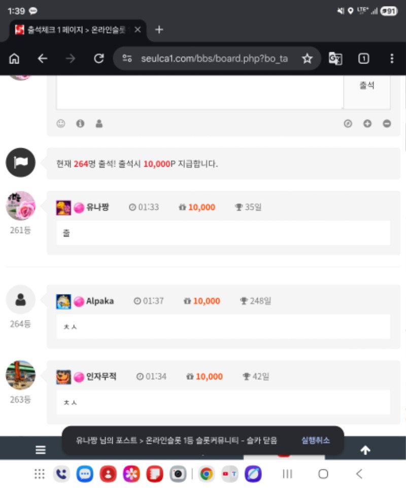 출석인증~ > 자유게시판 | 온라인슬롯 1등 슬롯커뮤니티 - 슬카
