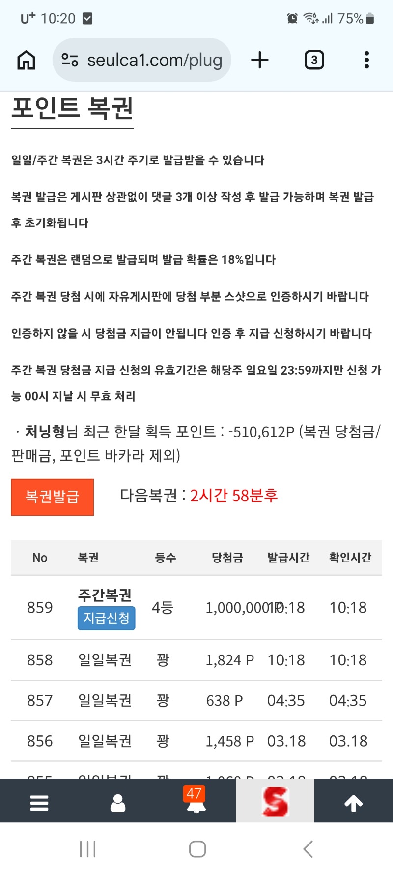 주복4등당첨 처닝형 13 0 0 10:21:17 *기프티콘 바코드 노출 주의* <- 감사합니다~~ 0 0 https://seulca1.com/bbs/board.php?bo_table=free&wr_id=3700110 Author 0 0 Lv.9 처닝형 9 5,561,155 (39%) 처닝형님 보유 포인트 : P 357,842 +1 03.19 맛점들하세요~ +13 03.19 주복4등당첨 +2 03.17 맛저들하세요~ +4 03.17 시안돌발궁금한거잇어요 +1 03.15 [비밀글] 포인트교환
