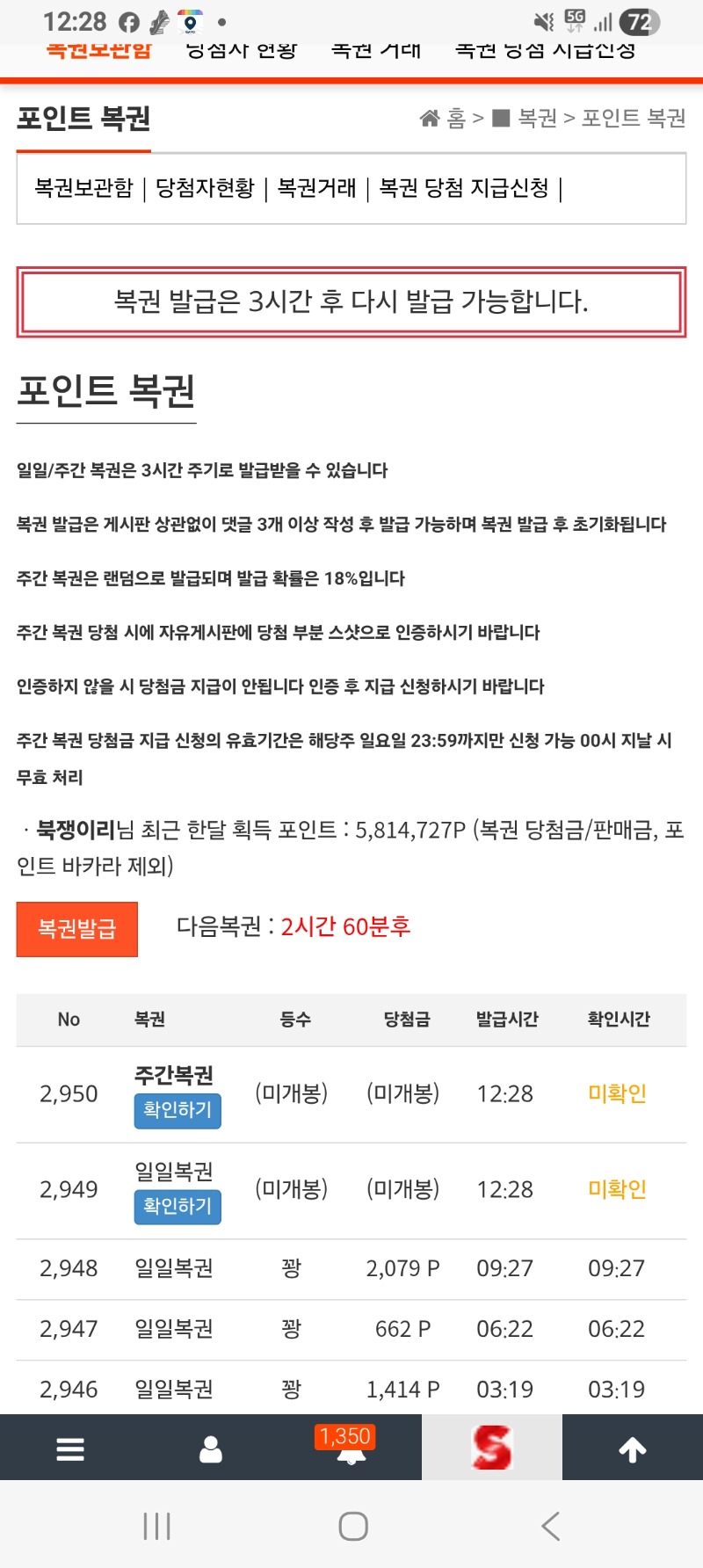 1주일만의 쌍복이 왔네요. 북쟁이리 2 0 0 12:29:33 *기프티콘 바코드 노출 주의* <- 어찌될까? 0 0 https://seulca1.com/bbs/board.php?bo_table=free&wr_id=3700709 Author 4 3 Lv.14 북쟁이리 14 29,171,050 (88%) 북쟁이리님 보유 포인트 : P 403,500 +4 03.19 일복이 8등. +2 03.19 1주일만의 쌍복이 왔네요. +13 03.19 오라메 192*500 +2 03.19 맛점하세요 +29 03.19 로얄슈천 1273배