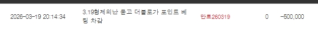 형난 화이팅(포인트차감) 밀감 2 0 0 20:40:43 *기프티콘 바코드 노출 주의* <- 형난포 차감 됐네요~~~ 랑이 믿진 않지만 풀뱃했다 ㅋㅋ화이팅 0 0 https://seulca1.com/bbs/board.php?bo_table=free&wr_id=3702584 Author 21 6 Lv.16 밀감 16 55,265,969 (26%) 밀감님 보유 포인트 : P 2,003,202 +2 03.19 형난 화이팅(포인트차감) +5 03.19 양이 아부지 추겜 +19 03.19 저녁은 김치찌개~ +9 03.19 집오자마자 정신이 없네 +8 03.19 배민 비마트 장본것들~~