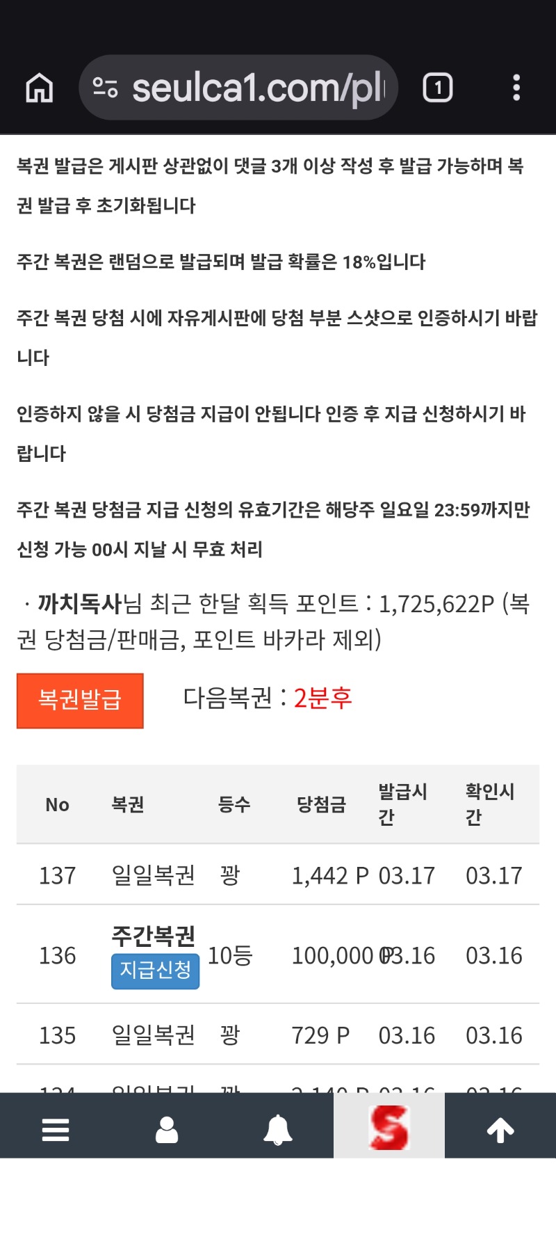 주복 10등 당첨 까치독사 6 0 0 00:02:42 *기프티콘 바코드 노출 주의* <- 1등을 기다리며... 0 0 https://seulca1.com/bbs/board.php?bo_table=free&wr_id=3703463 Author 1 0 Lv.6 까치독사 6 1,710,330 (71%) 까치독사님 보유 포인트 : P 561,708 +4 03.20 형난포로 너무 욕심부리다 뎅 ㅠㅠㅠ +4 03.20 토라메 351배 +2 03.20 토라메 388배 +1 03.20 [비밀글] 주복 10등 당첨 +6 03.20 주복 10등 당첨