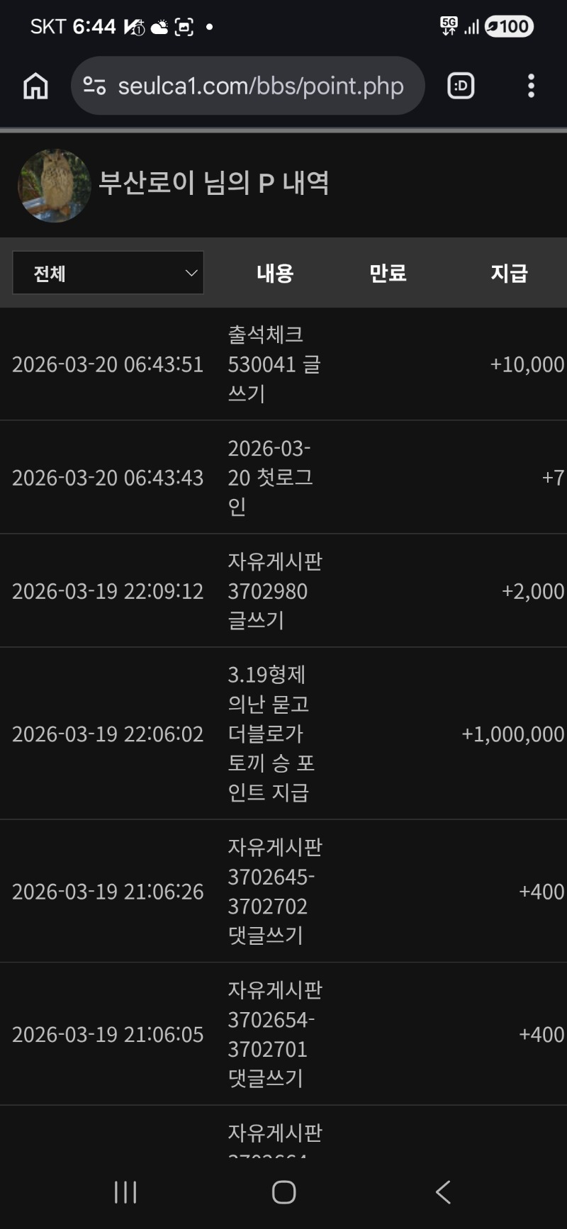미형 포인트감사~ 부산로이 0 0 0 06:47:00 *기프티콘 바코드 노출 주의* <- 꿀꺽!! 0 0 https://seulca1.com/bbs/board.php?bo_table=free&wr_id=3704056 Author 0 0 Lv.9 부산로이 9 6,093,600 (52%) 부산로이님 보유 포인트 : P 1,301,326 +13 03.20 주복2등 신청완~♡ 03.20 미형 포인트감사~ 03.20 [비밀글] 주복2등 +2 03.19 미형 고생했어 +2 03.19 형난 화이팅