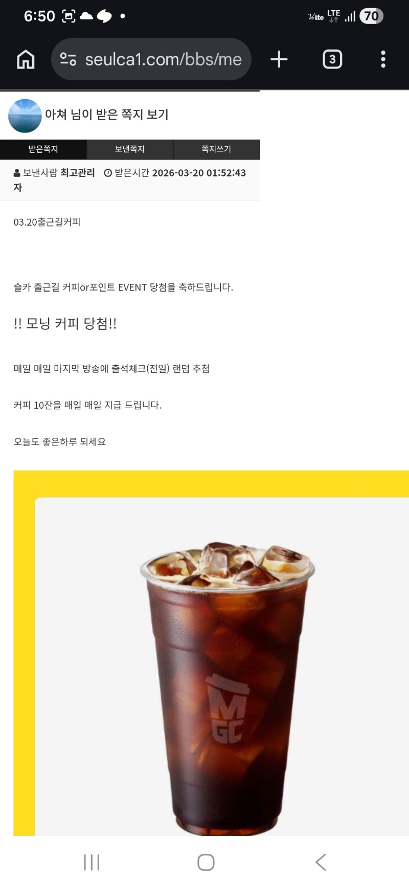 출근길 커피 감사 아쳐 3 0 0 06:51:04 *기프티콘 바코드 노출 주의* <- 0 0 https://seulca1.com/bbs/board.php?bo_table=free&wr_id=3704065 Author 1 1 Lv.9 아쳐 9 7,856,284 (96%) 아쳐님 보유 포인트 : P 20,000 +3 03.20 출근길 커피 감사 +11 03.20 번영 패 +10 03.20 번영 패 +9 03.20 벉영 패 03.20 출책