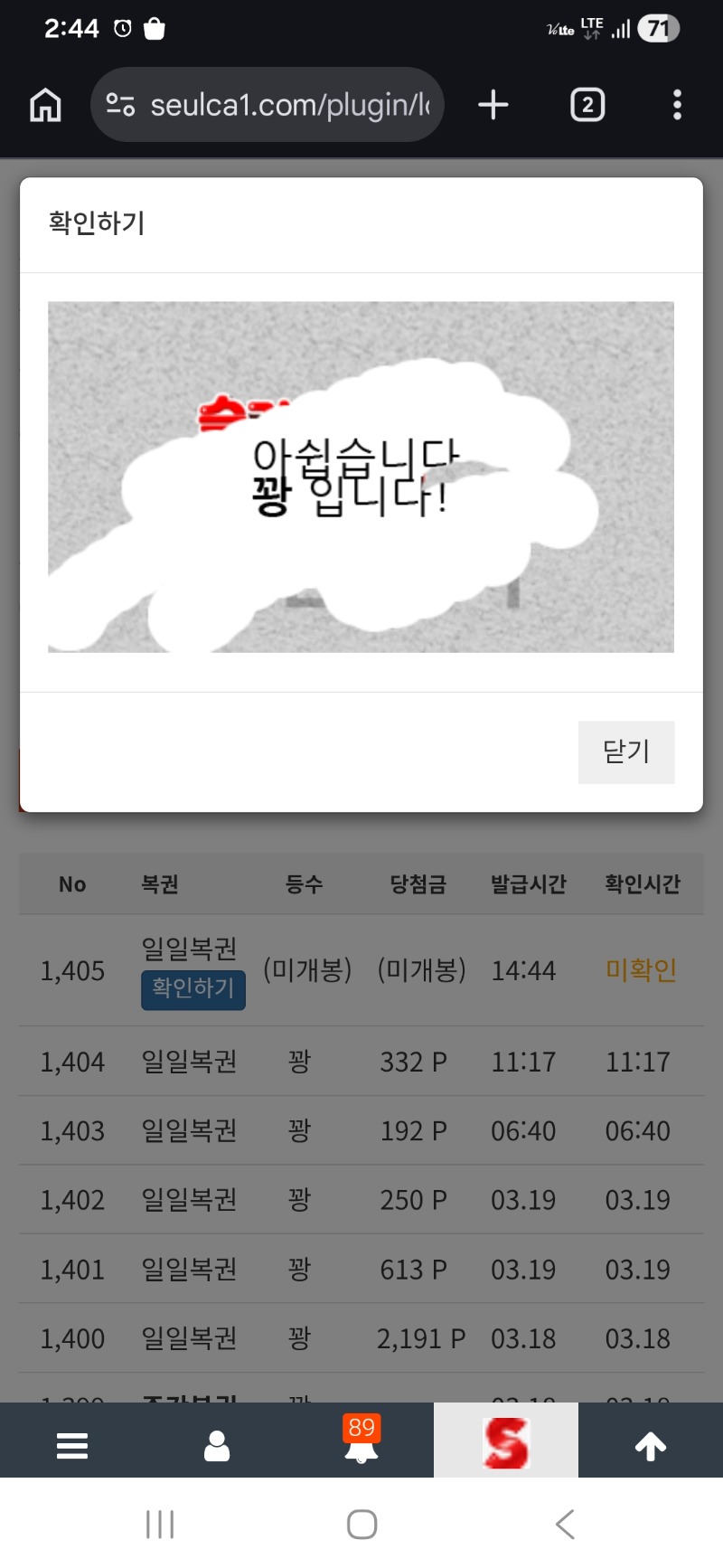 꽝 ㅜㅜ 아쳐 1 0 0 14:45:15 *기프티콘 바코드 노출 주의* <- 0 0 https://seulca1.com/bbs/board.php?bo_table=free&wr_id=3705094 Author 1 1 Lv.9 아쳐 9 7,864,784 (96%) 아쳐님 보유 포인트 : P 0 +1 03.20 꽝 ㅜㅜ +1 03.20 일복 꽝 ! +6 03.20 출근길 커피 감사 +20 03.20 번영 패 +15 03.20 번영 패