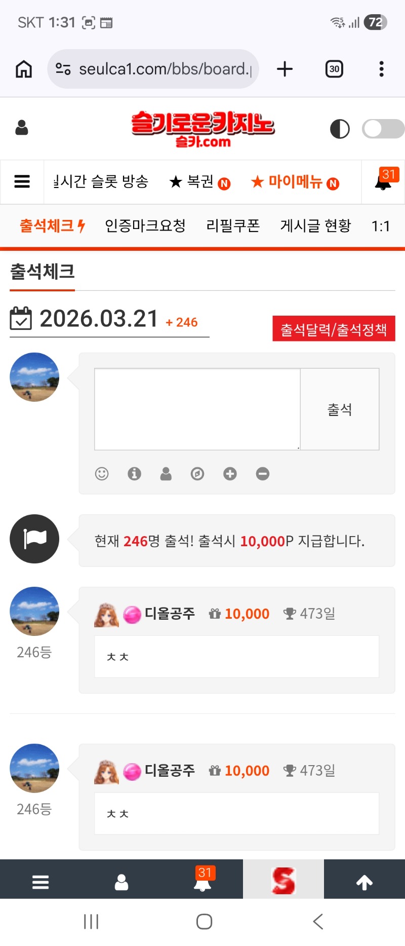출첵 디올공주 2 0 0 01:32:37 출첵*기프티콘 바코드 노출 주의* <- 0 0 https://seulca1.com/bbs/board.php?bo_table=free&wr_id=3706834 Author 23 16 Lv.19 디올공주 19 203,010,188 (0%) 디올공주님 보유 포인트 : P 12,070,620 +2 03.21 출첵 +44 03.20 레전드 515배*2000냥 +38 03.20 슈천 1100배 +24 03.20 공천383배*3000냥 +12 03.20 호넷돌발 후기