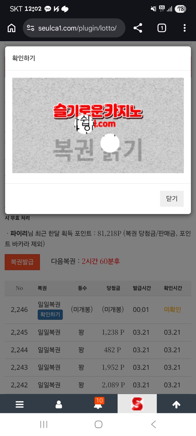 복권 꽝.. 파이리 3 0 0 00:02:56 *기프티콘 바코드 노출 주의* <- 엥잇.. 자러 가야겟다..ㅠ 0 0 https://seulca1.com/bbs/board.php?bo_table=free&wr_id=3709634 Author 2 1 Lv.12 파이리 12 17,963,361 (99%) 파이리님 보유 포인트 : P 18,134 +3 03.22 복권 꽝.. +2 03.21 이모~ +1 03.21 양이아부지 뱀피맥스 이벤포인트 감사합니다 +7 03.21 아이쒸 ㅋㅋㅋㅋ +6 03.21 맥이랑 똑같은 슬용호 1338회차