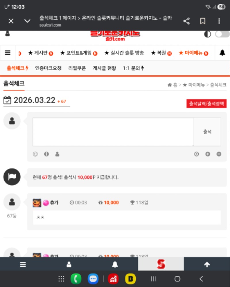 출석 츄가 1 0 0 00:03:43 *기프티콘 바코드 노출 주의* <- 0 0 https://seulca1.com/bbs/board.php?bo_table=free&wr_id=3709642 Author 0 0 Lv.9 츄가 9 5,904,652 (47%) 츄가님 보유 포인트 : P 1,131,659 +6 03.22 일복8등 감사합니다 +1 03.22 출석 +1 03.21 출석 +2 03.20 출석 +4 03.19 일복5등