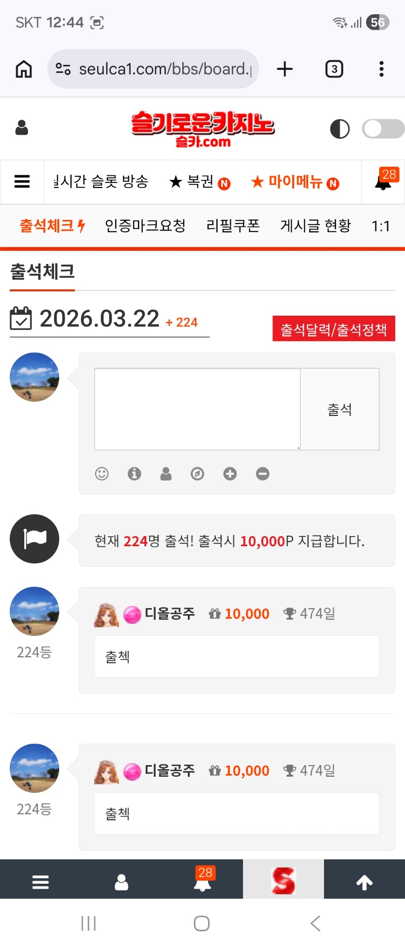 출첵합시다 디올공주 0 0 0 00:45:33 *기프티콘 바코드 노출 주의* <- 0 0 https://seulca1.com/bbs/board.php?bo_table=free&wr_id=3709734 Author 23 16 Lv.19 디올공주 19 203,697,204 (0%) 디올공주님 보유 포인트 : P 2,610 03.22 출첵합시다 +50 03.21 식물외계인 886배 +49 03.21 다욧이가말한 그풀줄 타이낀10연승 +20 03.21 오라메 260배*800냥 +41 03.21 깔끔하다 네츄럴 슈웃